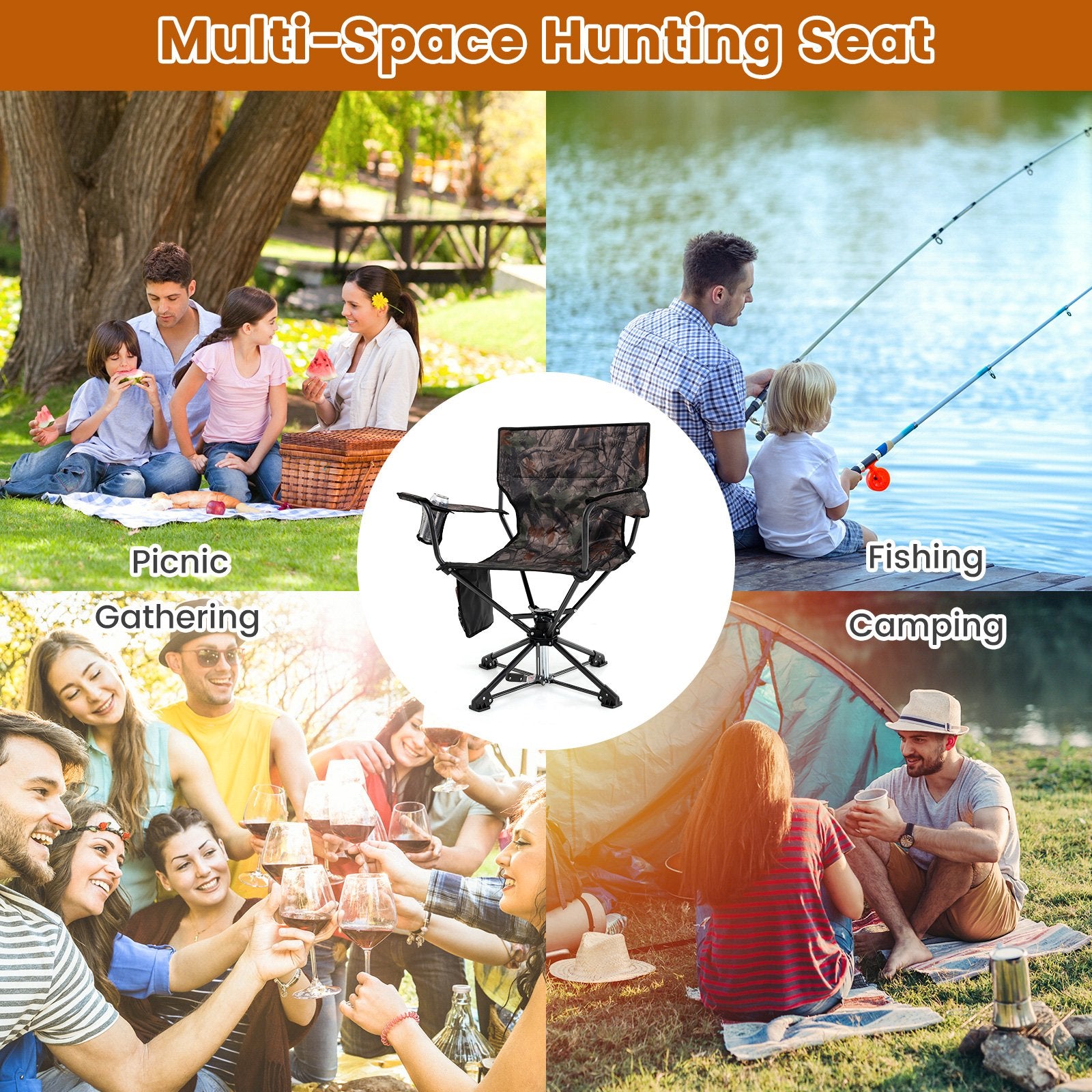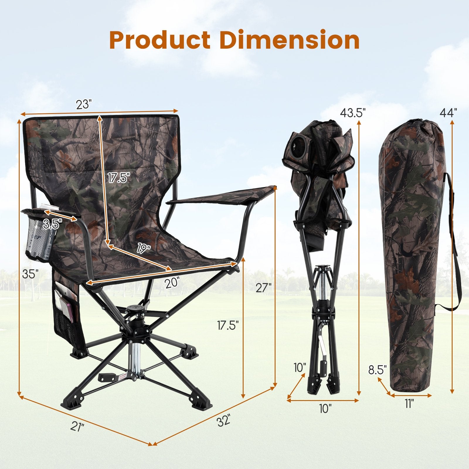 ● 360° swivel seat enables you to observe your prey from any direction