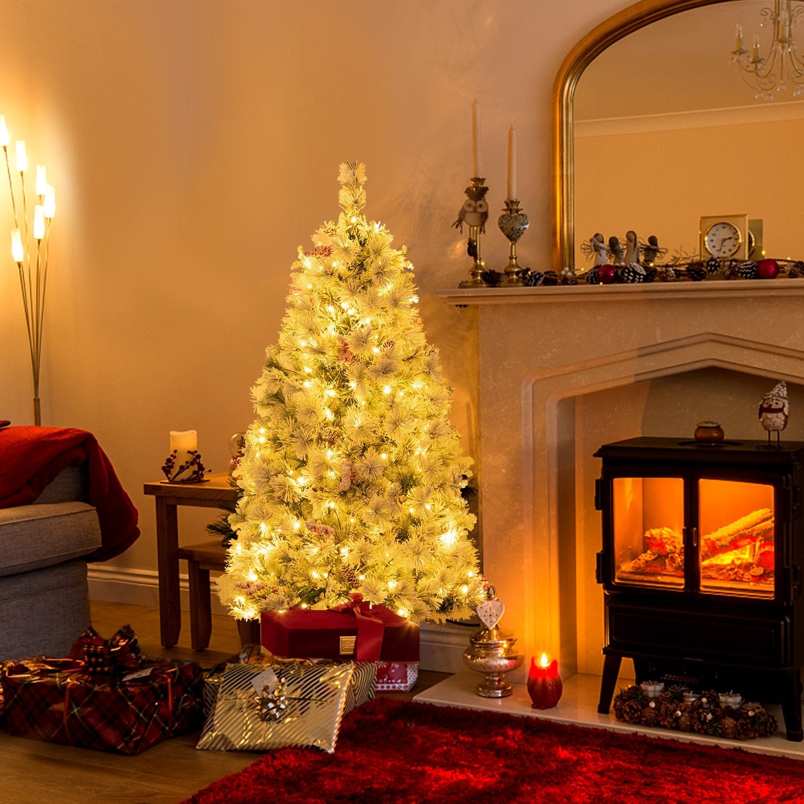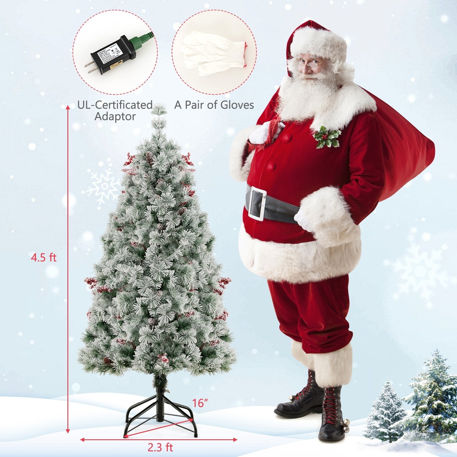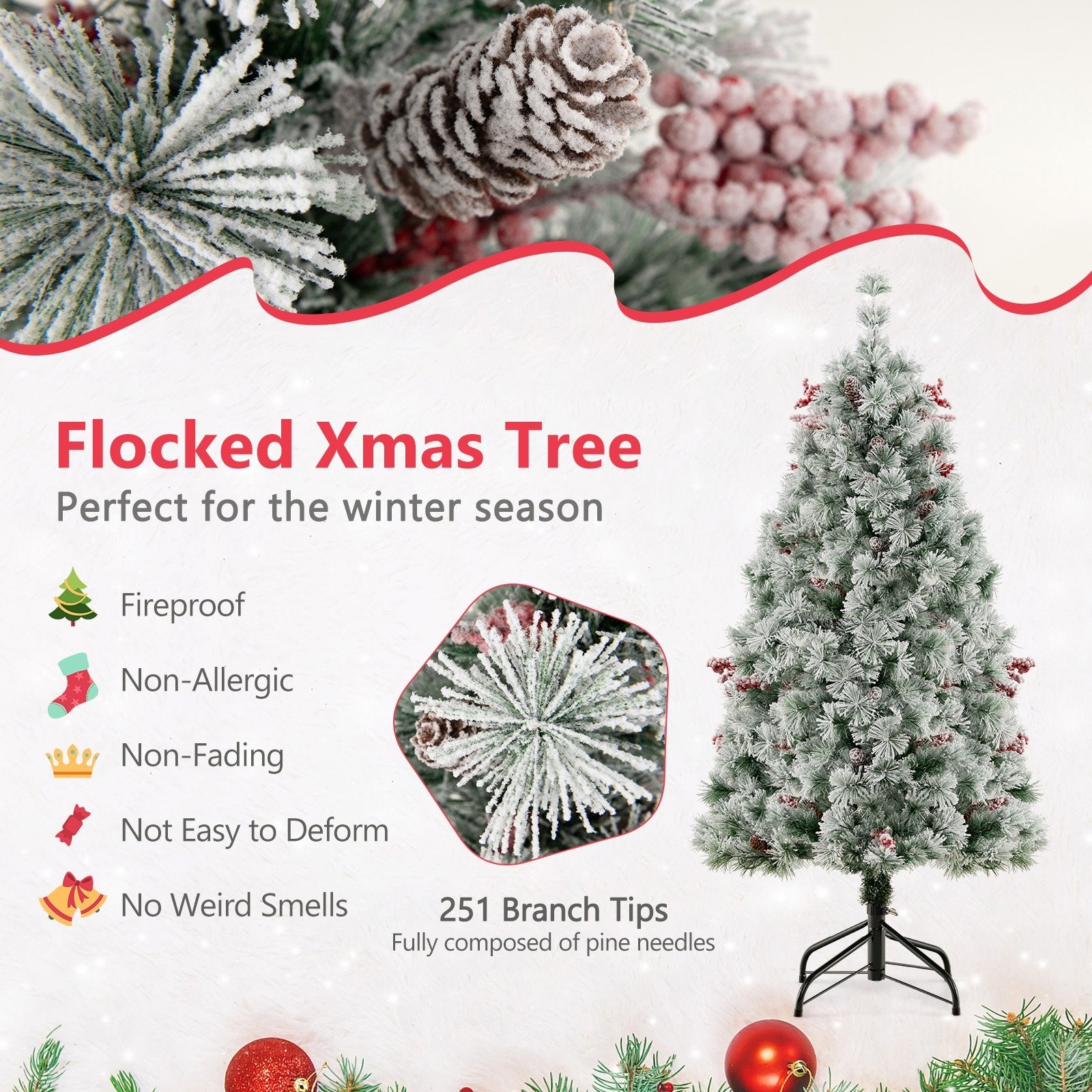 ● Snowy Pine Needles: Create a magical winter wonderland with the 4.5 ft flocked Xmas tree which contains up to 251 branch tips and fully consists of vivid pine needles. It is crafted of 100% new PVC so resistance to fire fading and allergies can be well ensured.