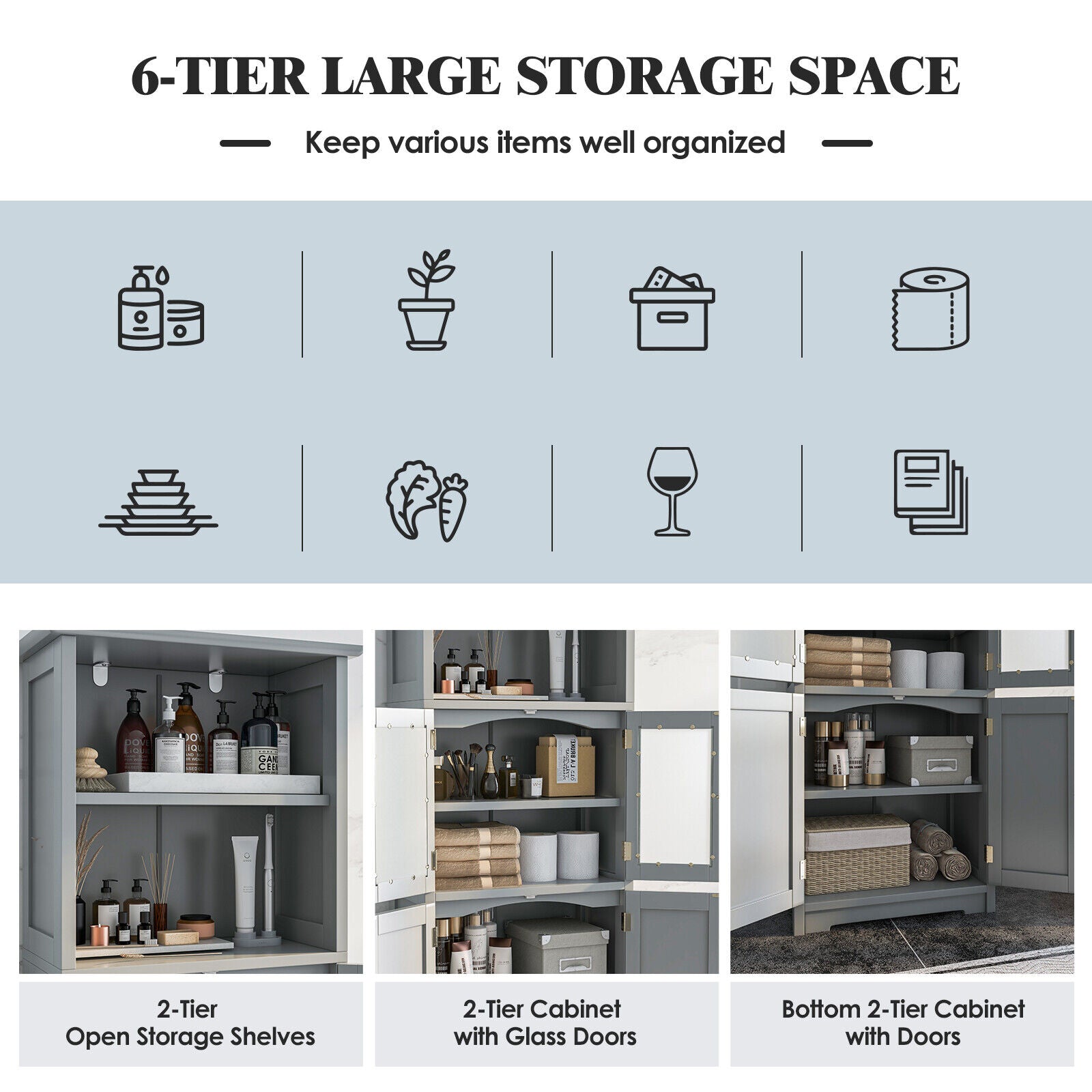 ● 6-Tier Enclosed and Open Storage Space: Equipped with 2-tier open storage shelves and 2 cabinets with doors this tall bathroom storage cabinet offers large storage space to keep various items well organized. Besides there are two 3-position adjustable shelves that allow you to customize interior storage space as you need.