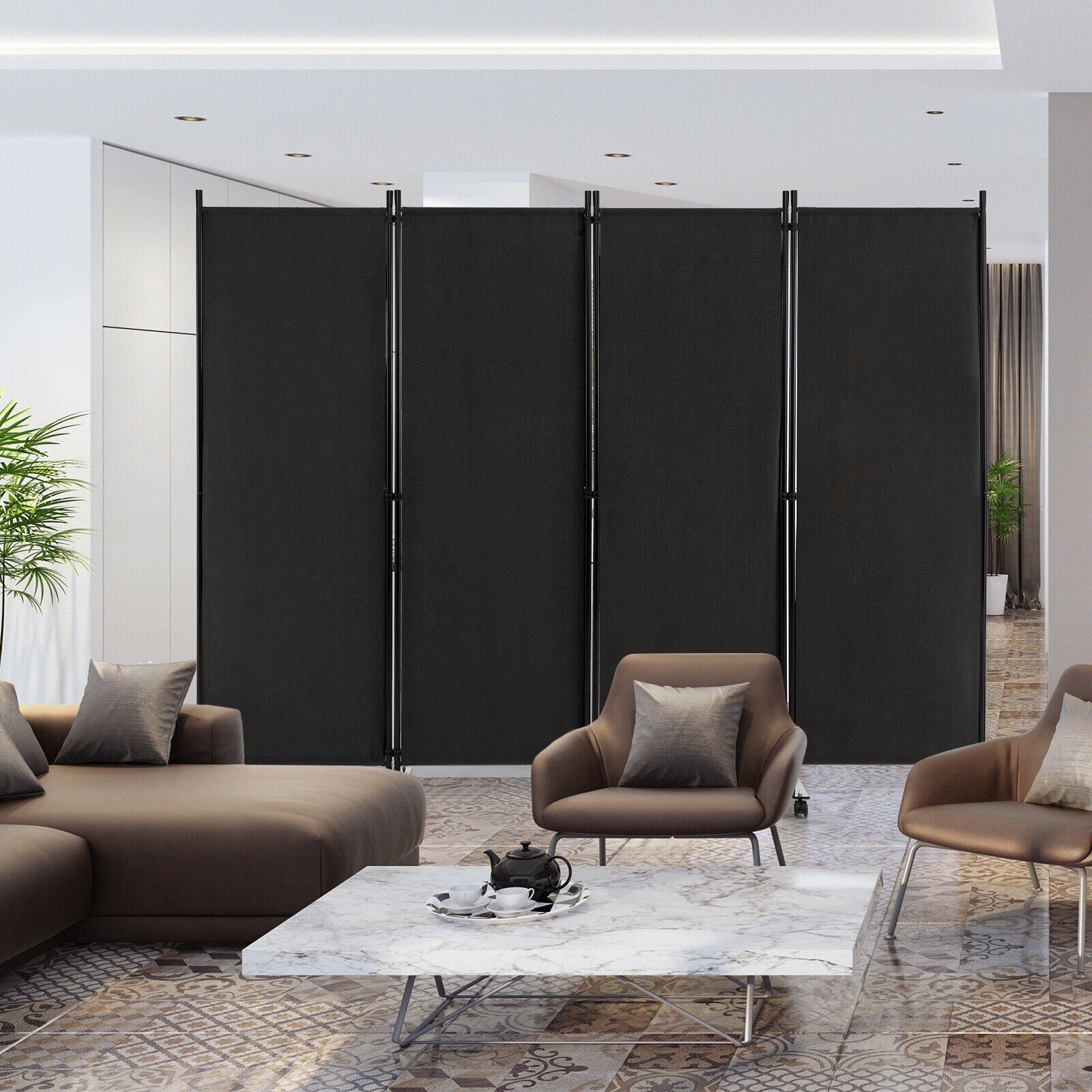 4-Panel Folding Room Divider 6 Feet Rolling Privacy Screen with Lockable Wheels-Black