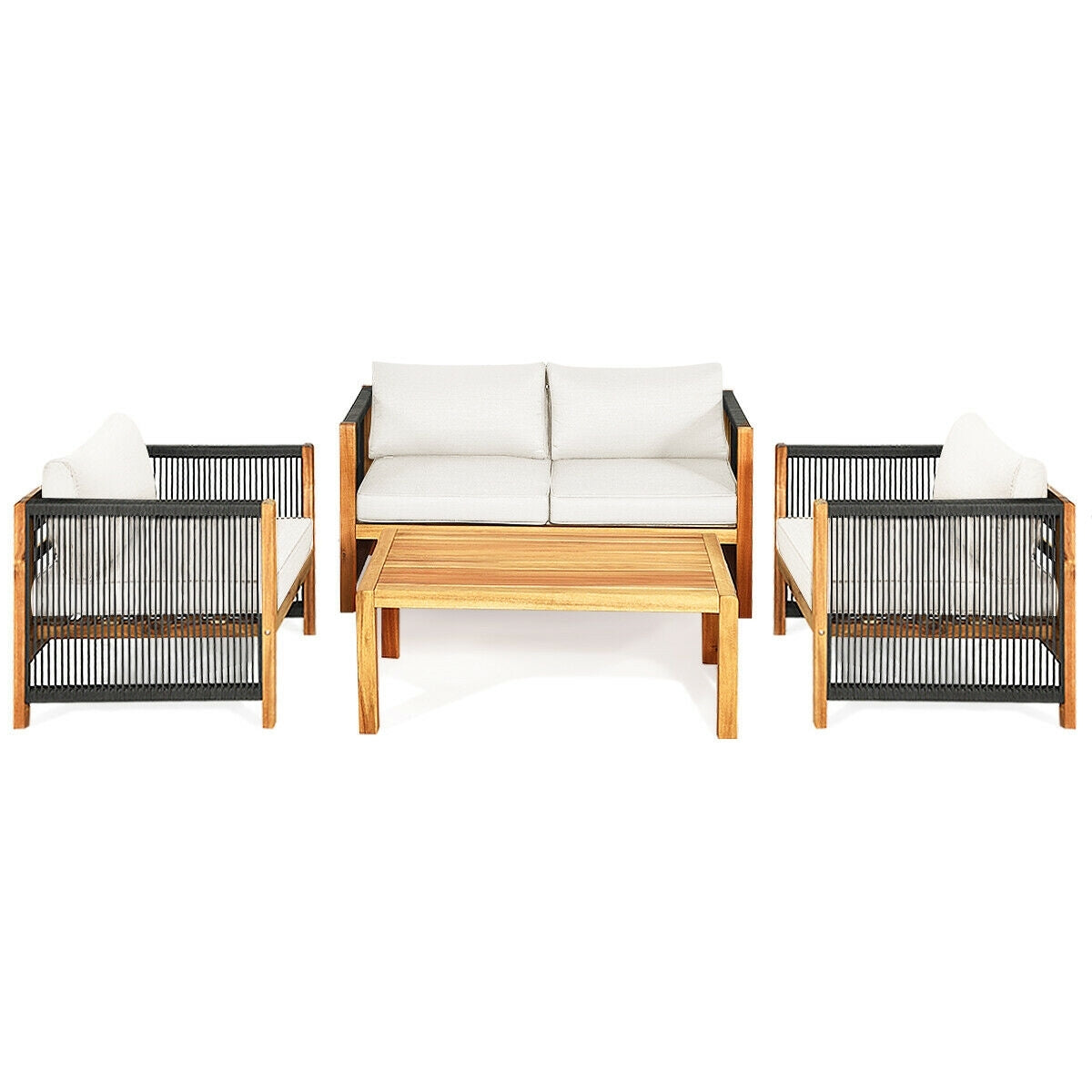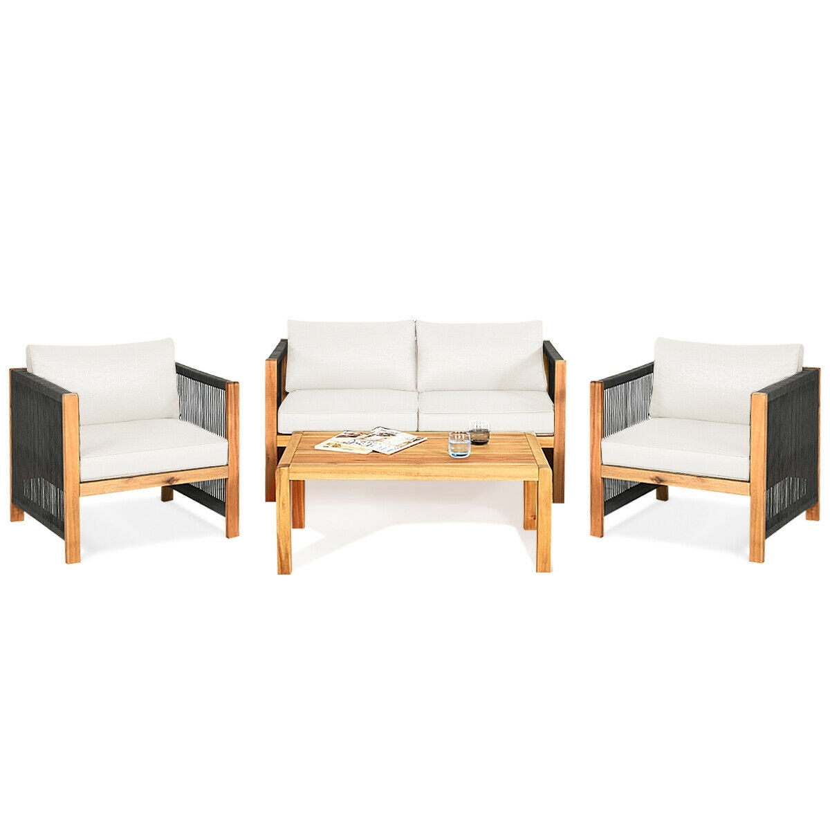 ● Sturdy Frame for Durable Use: Made of premium acacia wood and sturdy nylon rope the frame of 4-piece furniture set is durable and not easy to crack or deform. And the parts are connected with premium hardware so that the whole set is stable and can provide large weight capacity.