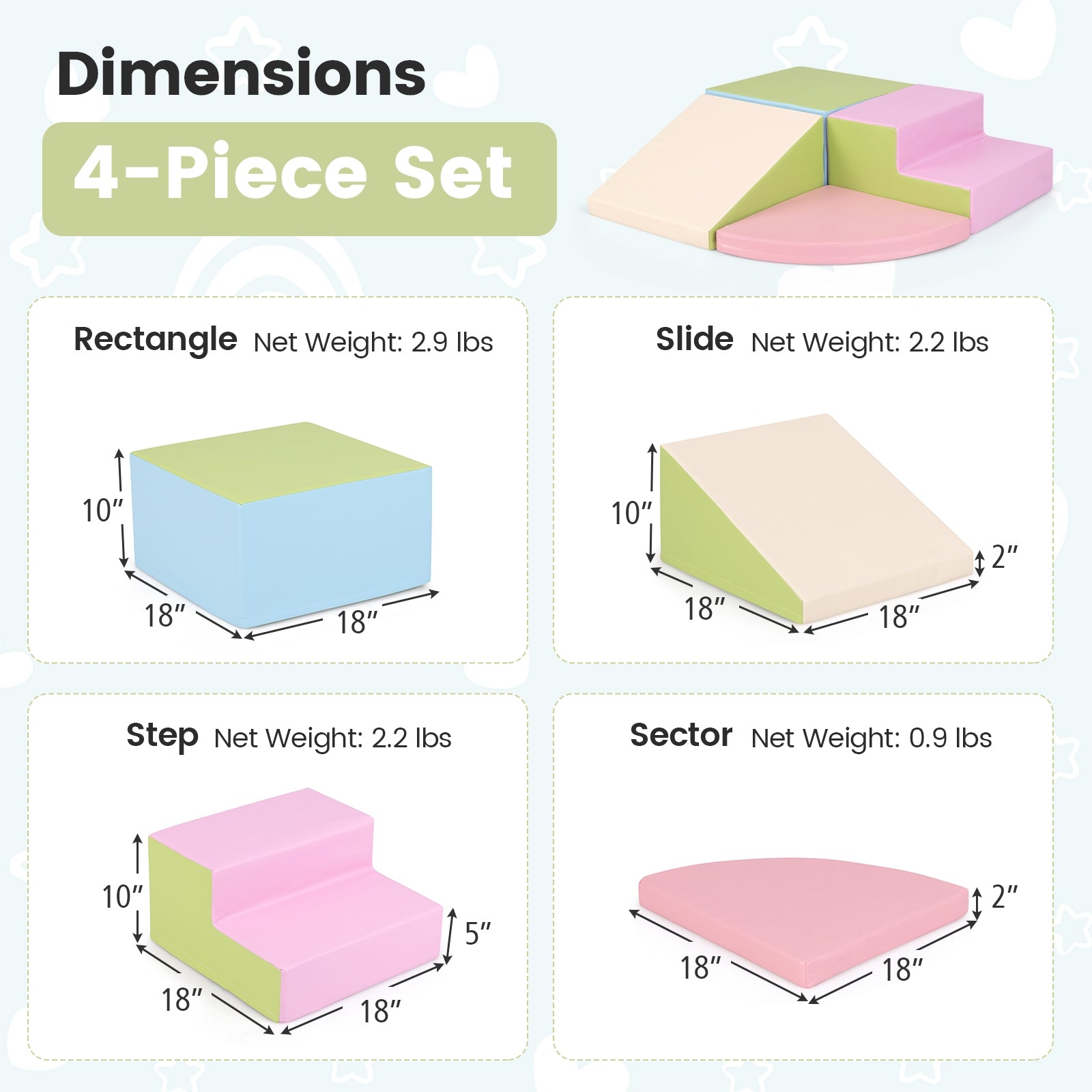 -4-piece set includes a rectangle slide step and sector