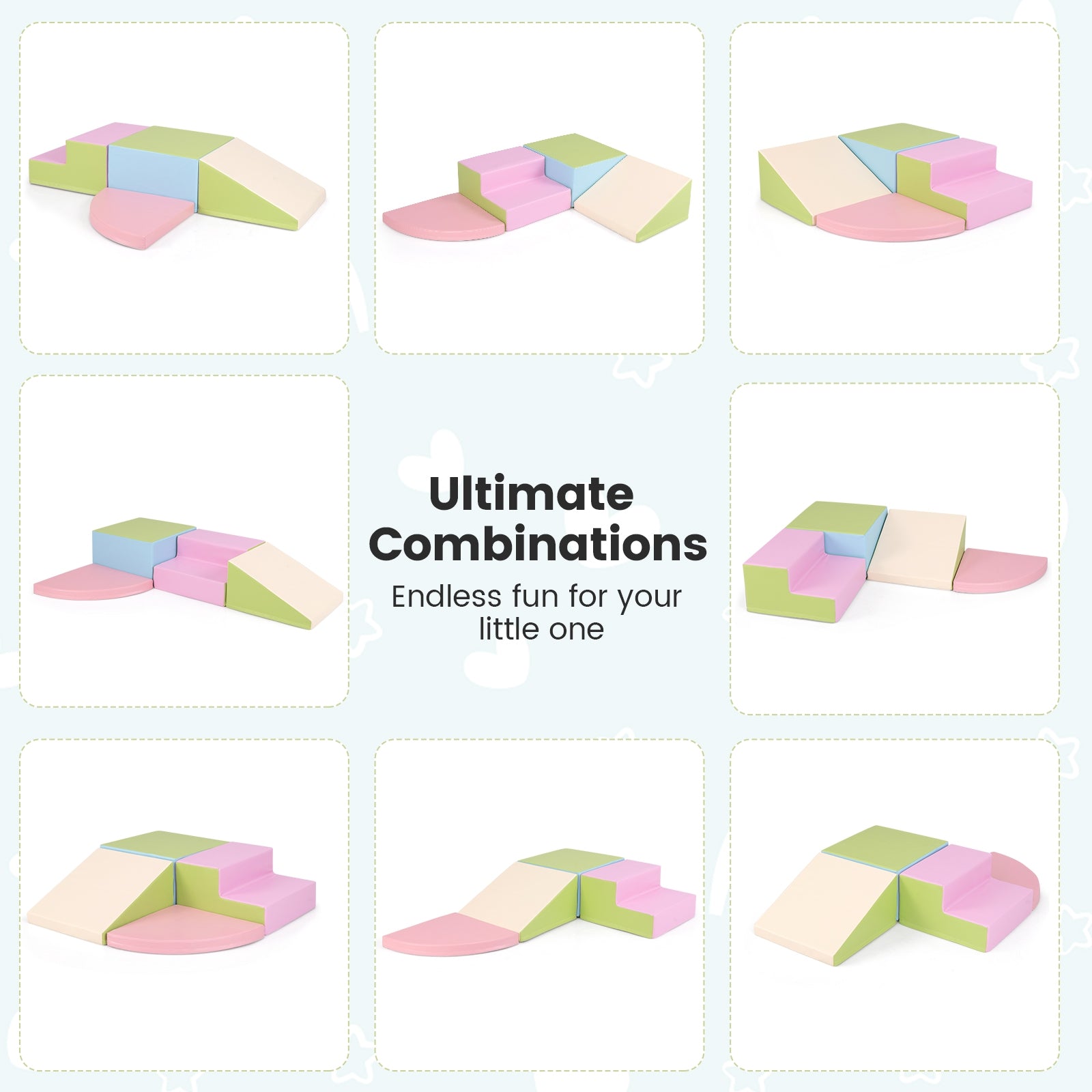 ● Superior Cushioning: Crafted with high-density EPE foam this soft playset provides a soft yet resilient surface that ensures safety during activities like climbing crawling and sliding. The robust construction guarantees long-lasting fun and comfort for all young adventurers.
