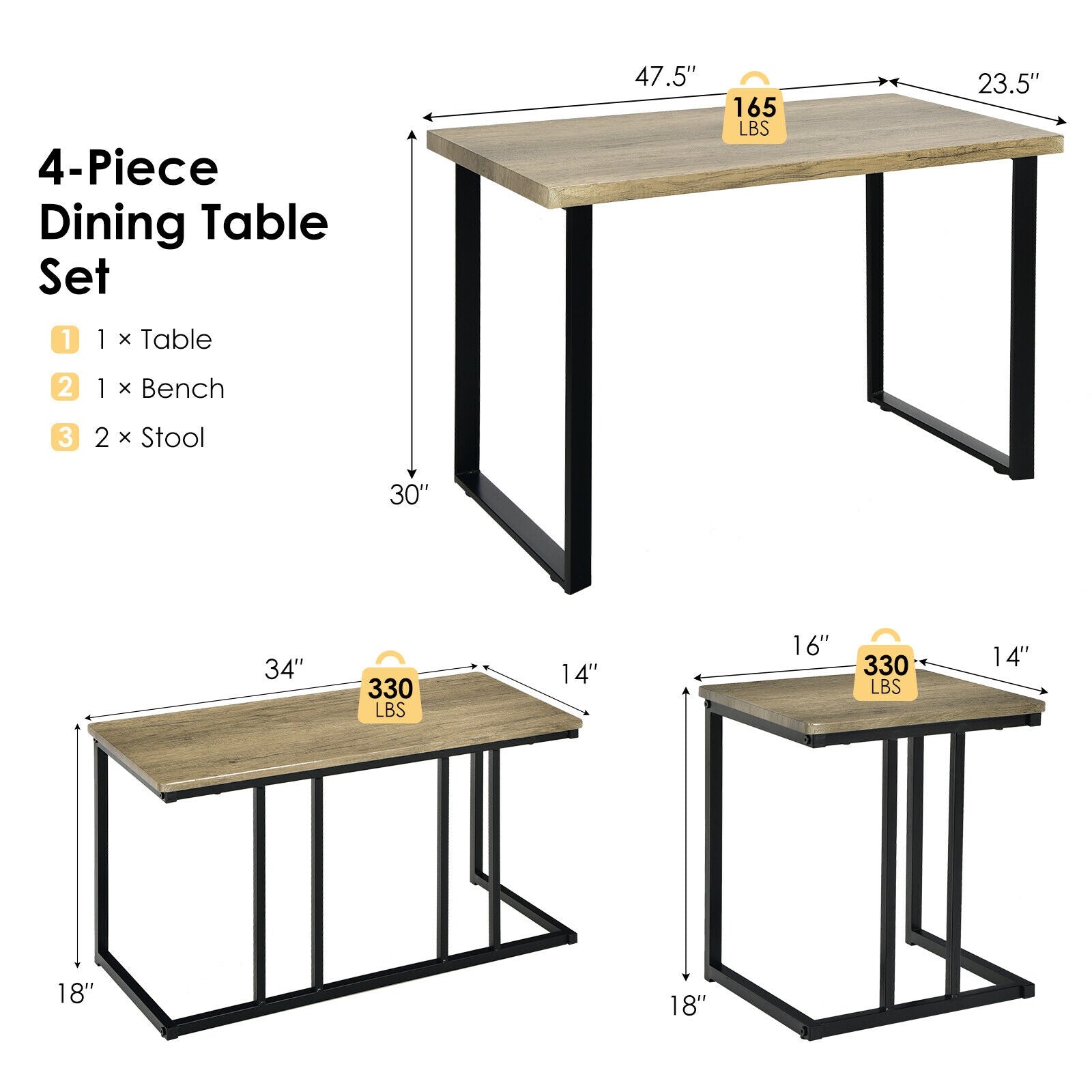 ● Space-saving Design: This dining table set is very compact with the table measuring 47" x 23.5"x 30" the bench measuring 34" x 14"x 18" and the stools measuring 16" x 14"x 18". When they are not in use you can place them easily under your desk without taking up too much storage space.