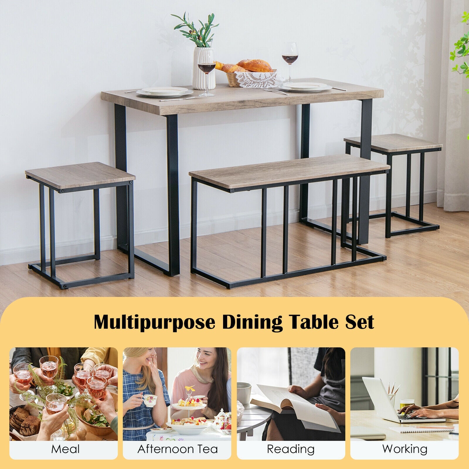 ● Versatile Dining Table Set: The table of the dining set is spacious enough to provide plenty of room for the whole family to eat or chat. Besides the bench and 2 stools can accommodate 4 people. It can be widely used in kitchen office and study to meet diverse needs such as dining table computer table and a reading table.