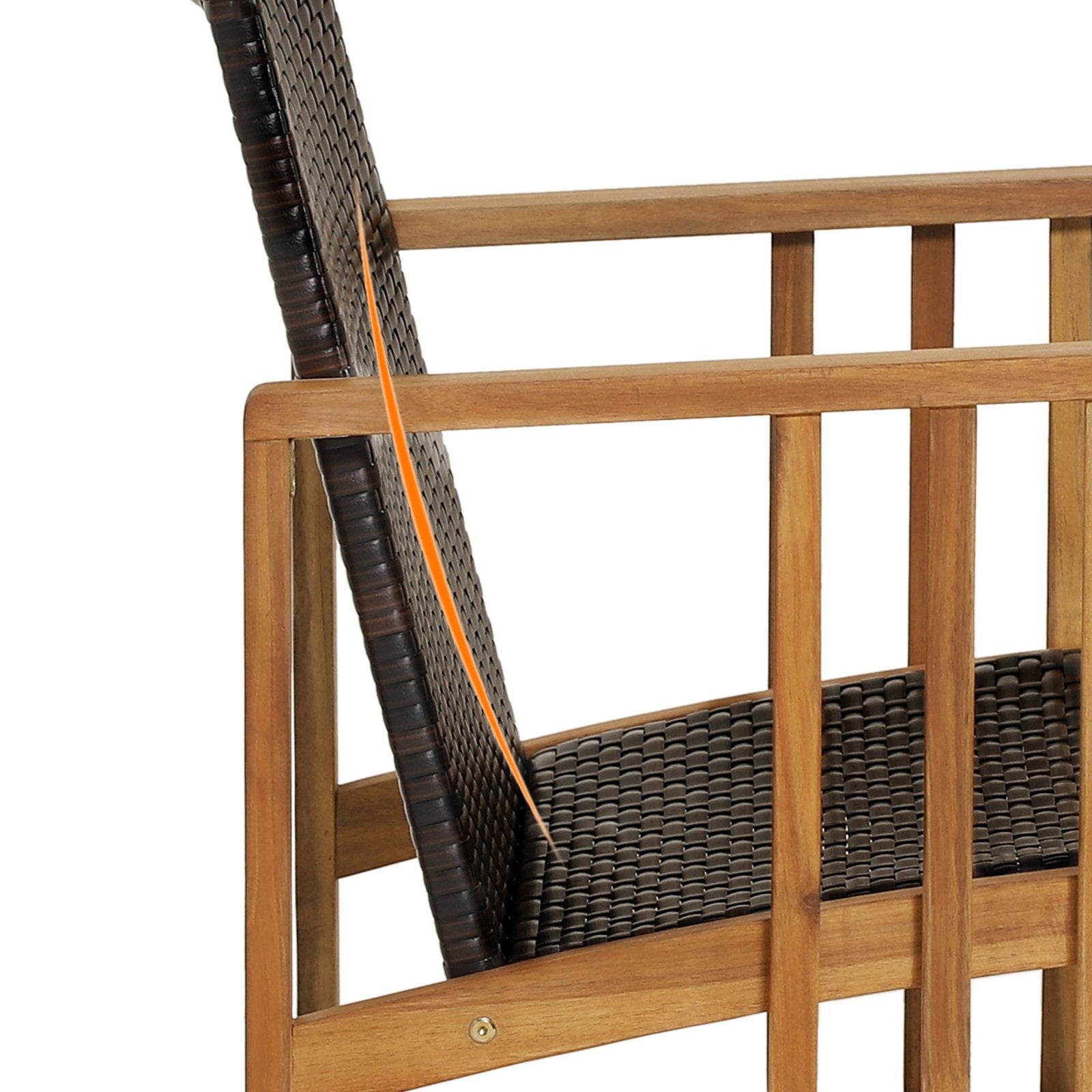 ● Well-Selected Material: The chair frame and coffee table are made of high-grade acacia wood which brings you natural feelings and withstands long-time use. Plus the hand-woven mix brown PE rattan makes the chairs elegant and durable for outdoor use.