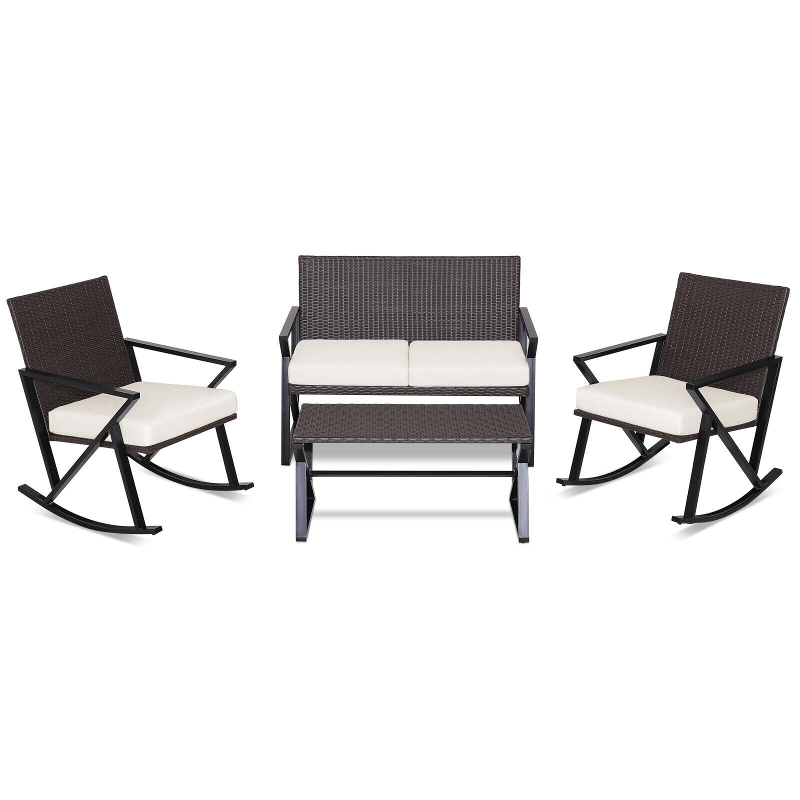 ● Fetch Drinks Easier: This 4-piece rocking set also comes with a sturdy coffee table which is perfect to place snacks drinks books phones and so on for easy reach. Featuring a solid PP board under the tabletop the table is of higher stability. And the adjustable footpads keep it more stable on the uneven ground.