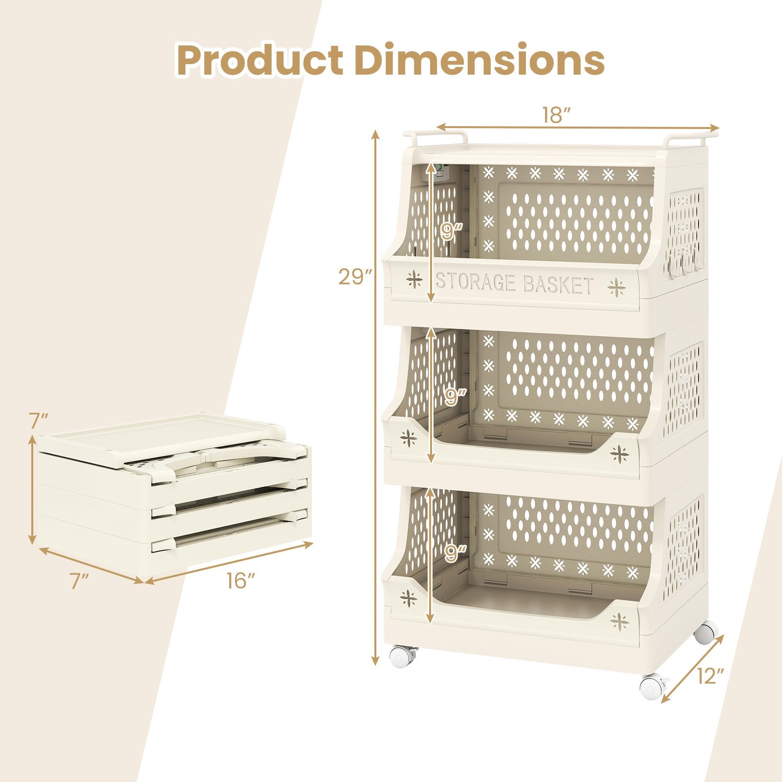 Multi-functional Basket Cart: This rolling storage cart is multi-purpose. Use it as a clothes organizer in your laundry room or as a storage cart for toiletries in the bathroom. It is also great for holding snacks or documents in your living room or bedroom.