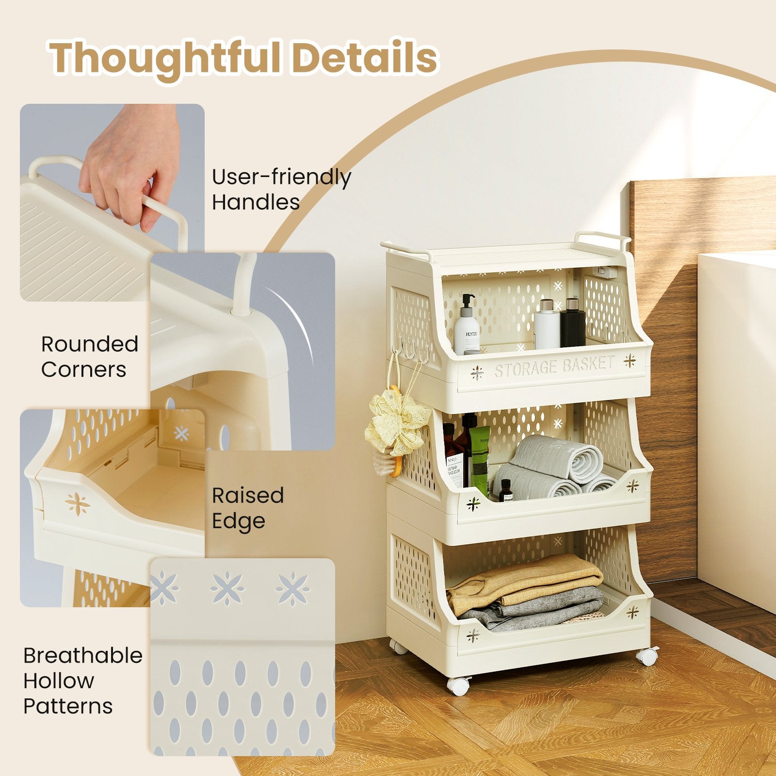 Ventilated Design for Freshness: The entire frame of this laundry organizer is designed with ventilation in mind crafted with breathable hollow patterns that allow for airflow perfect for storing your dirty clothes and towels.