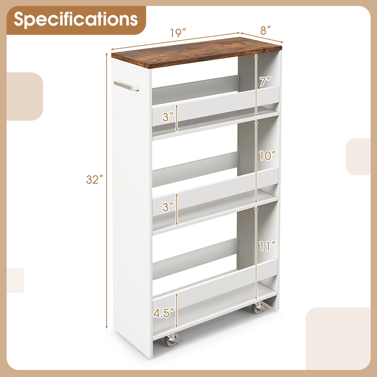 ● Effortlessly Maximize Space: Say goodbye to clutter with the 8-inch wide storage cart perfect for tight spots in bathrooms kitchens or offices. It's 3-inch wider than previous version offering large capacity for storing bigger items.