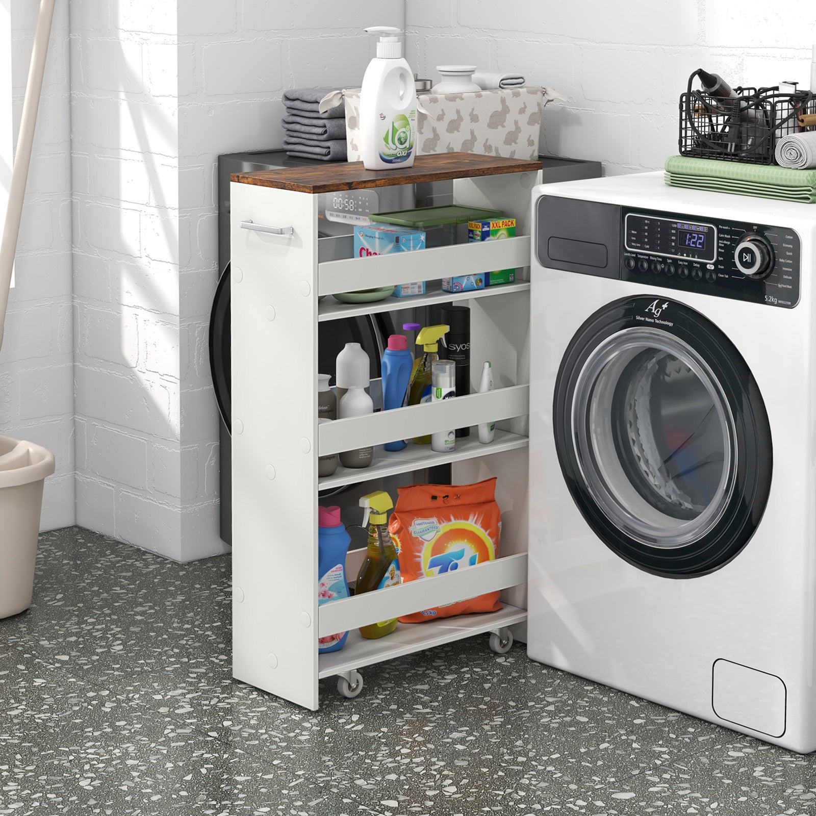 ● Smooth Maneuverability and Secure Placement: Glide through narrow corners effortlessly on 4 universal casters including 2 lockable ones for added stability. The multi-functional handle of the narrow cart doubles as a convenient towel bar.