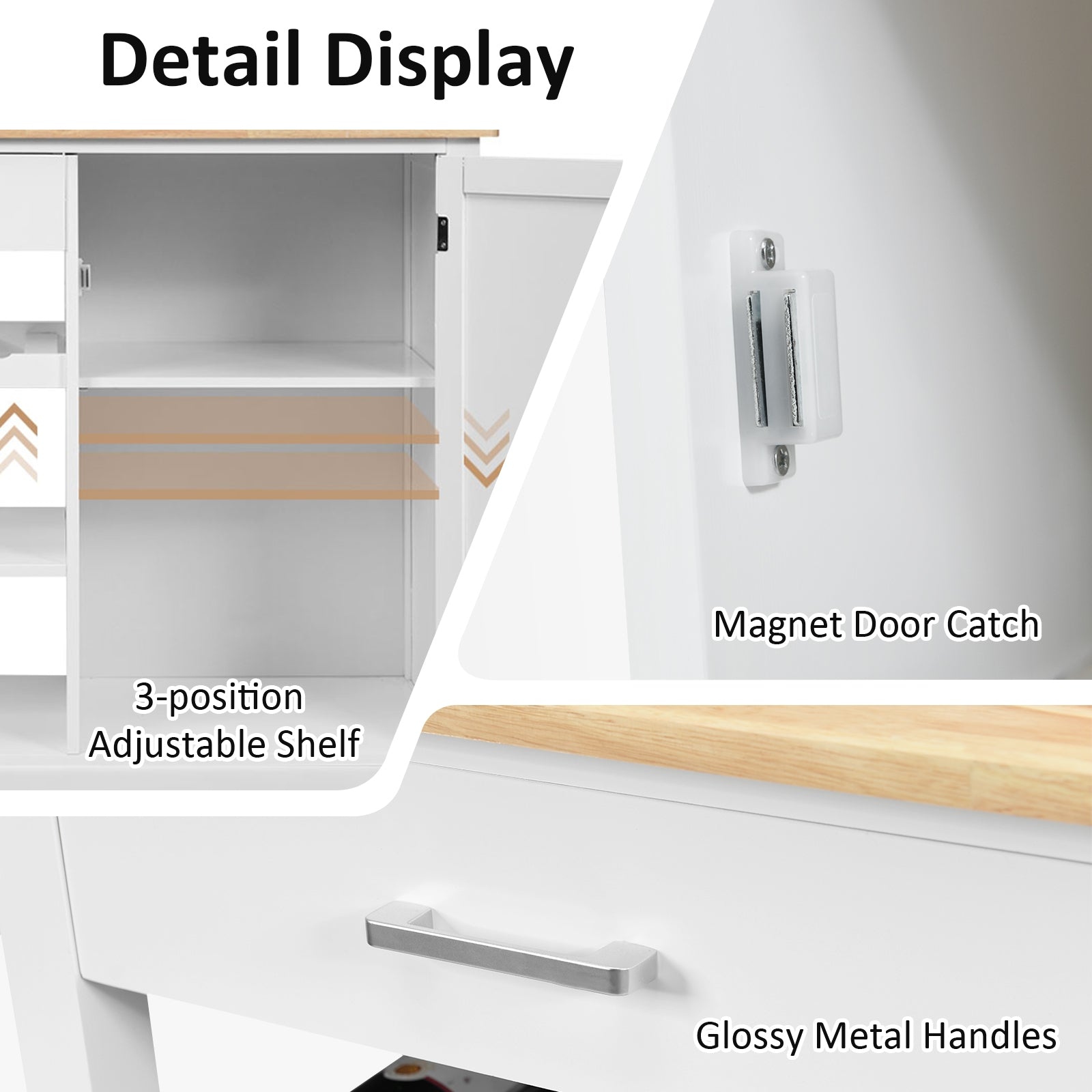 The high-quality rubberwood pine and MDF make it sturdy and durable and external spray paint can prevent moisture. You can use it for a long time. One drawer one cabinet and three open shelves provide large storage space for your compact kitchen. The cart can help you keep your kitchen neat and clean and save space. It is multifunctional because it can be used for different purposes such as kitchen cart bookshelf and so on. There is an active shelf behind the cabinet so that you can adjust the height of the shelf according to your need.