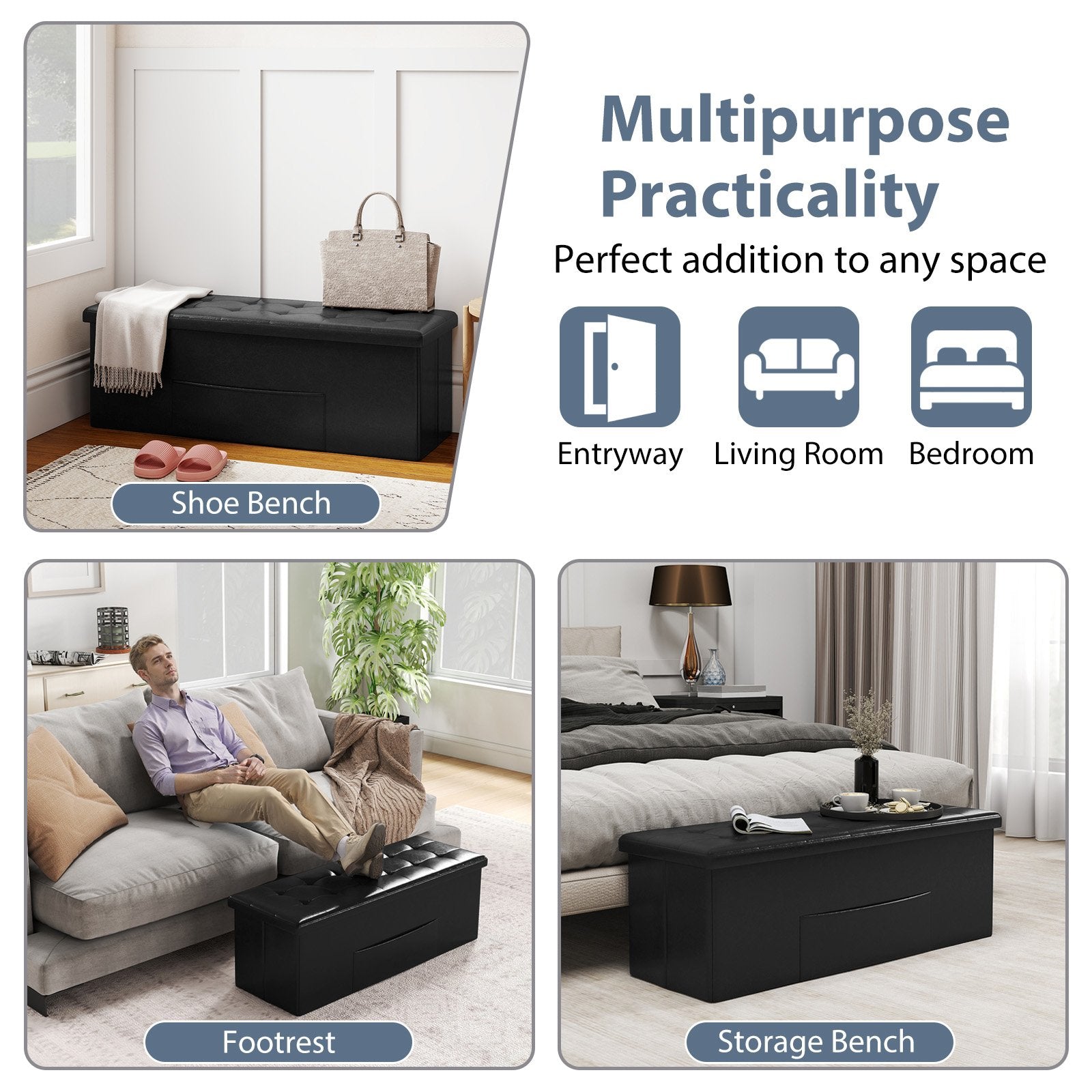 ● Easy Setup and Folding: This storage bench sets up in moments without tools greatly saving your precious time. Moreover the folding design makes it fits into tight spaces when not in use for space-saving.