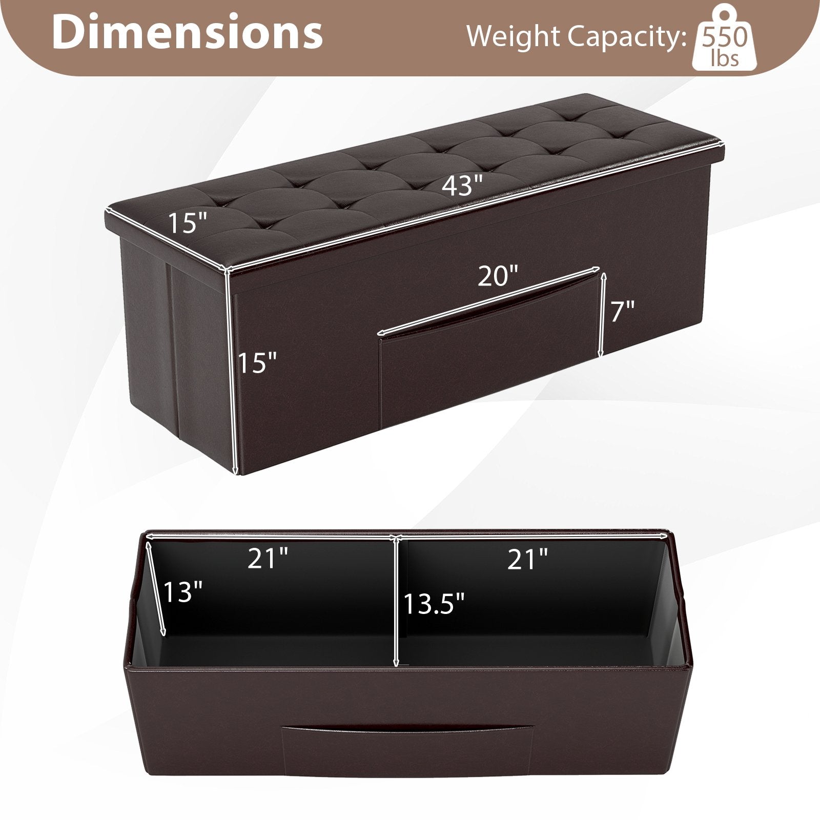 43 Inches Folding Storage Ottoman Bench Foot Rest Stool End of Bed Bench-Brown