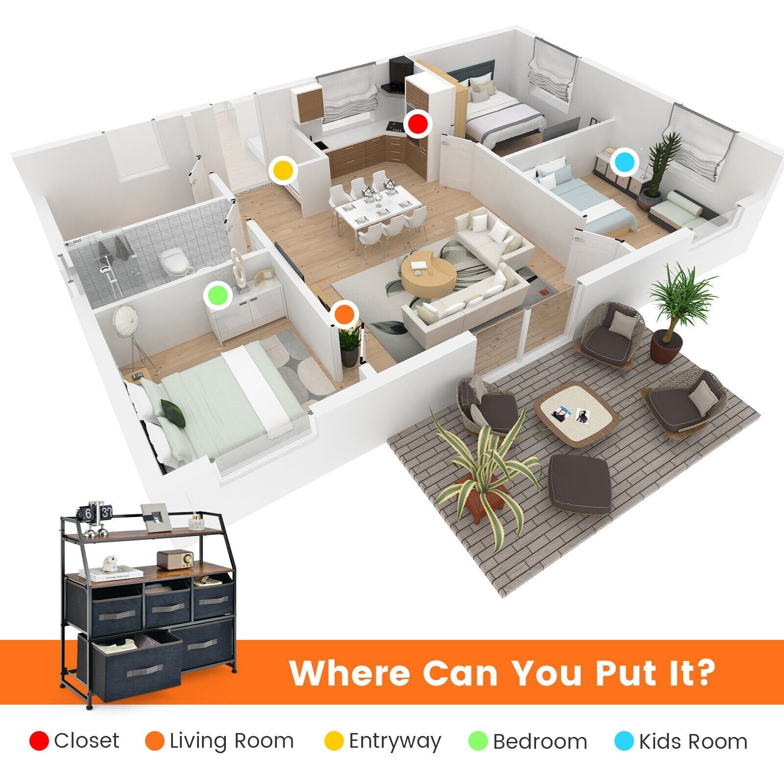 ● Designed for Stability and Safety: Supported by a strong metal frame the storage dresser unit shows excellent stability. The adjustable non-slip foot pads are able to stabilize this 5-drawer dresser when the ground is uneven. Additionally the quipped anti-tipping fittings aim to protect your family's safety.