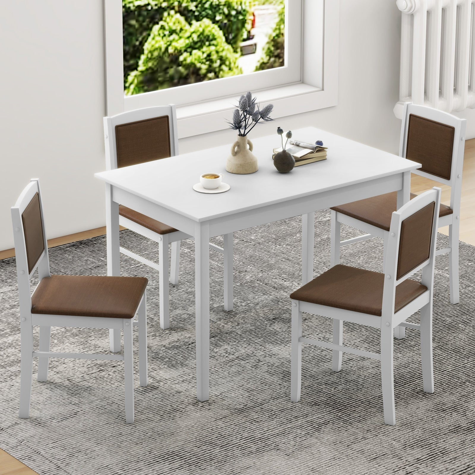 ● Complete 5-Piece Set: This dining room kitchen furniture includes a rectangular dining table and 4 padded chairs which are perfect for cozy family meals or entertaining friends. The table measures 45" x 28" x 30" (L x W x H) and the chair measures 16" x 18" x 34" (L x W x H).