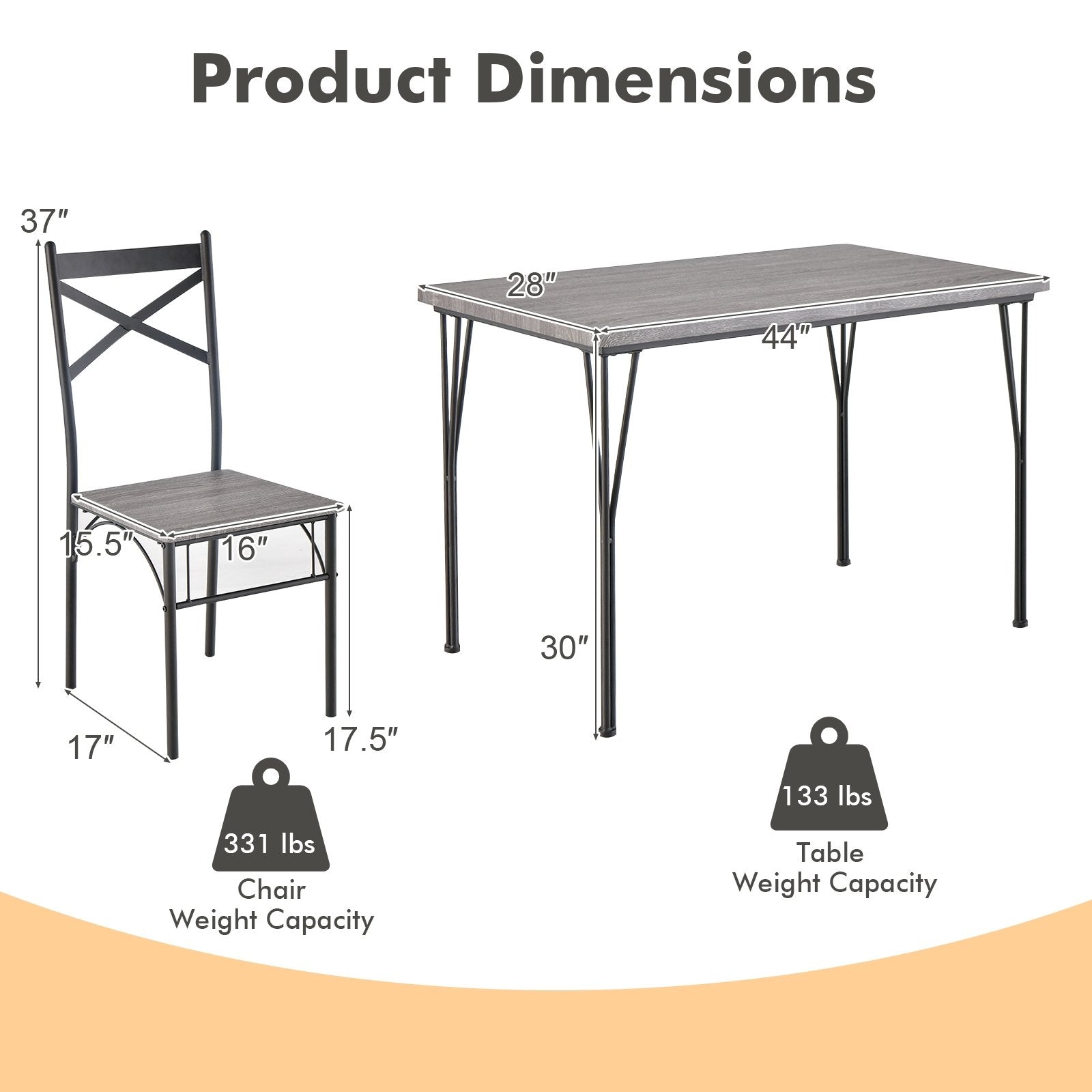 - Weight Capacity of Each Chair: 330 lbs