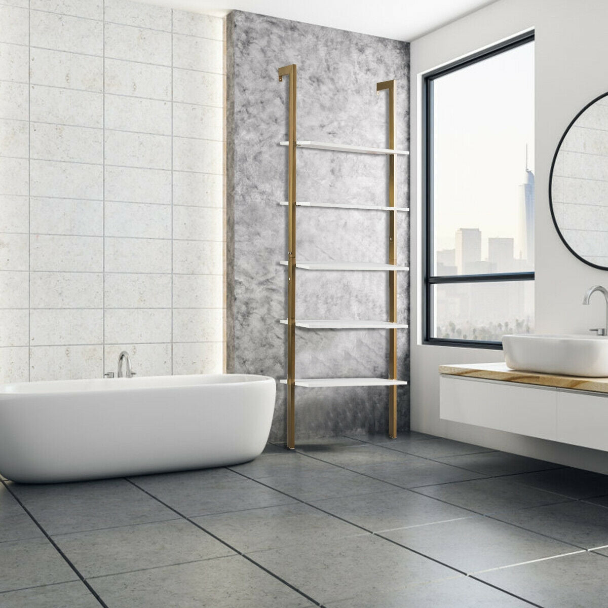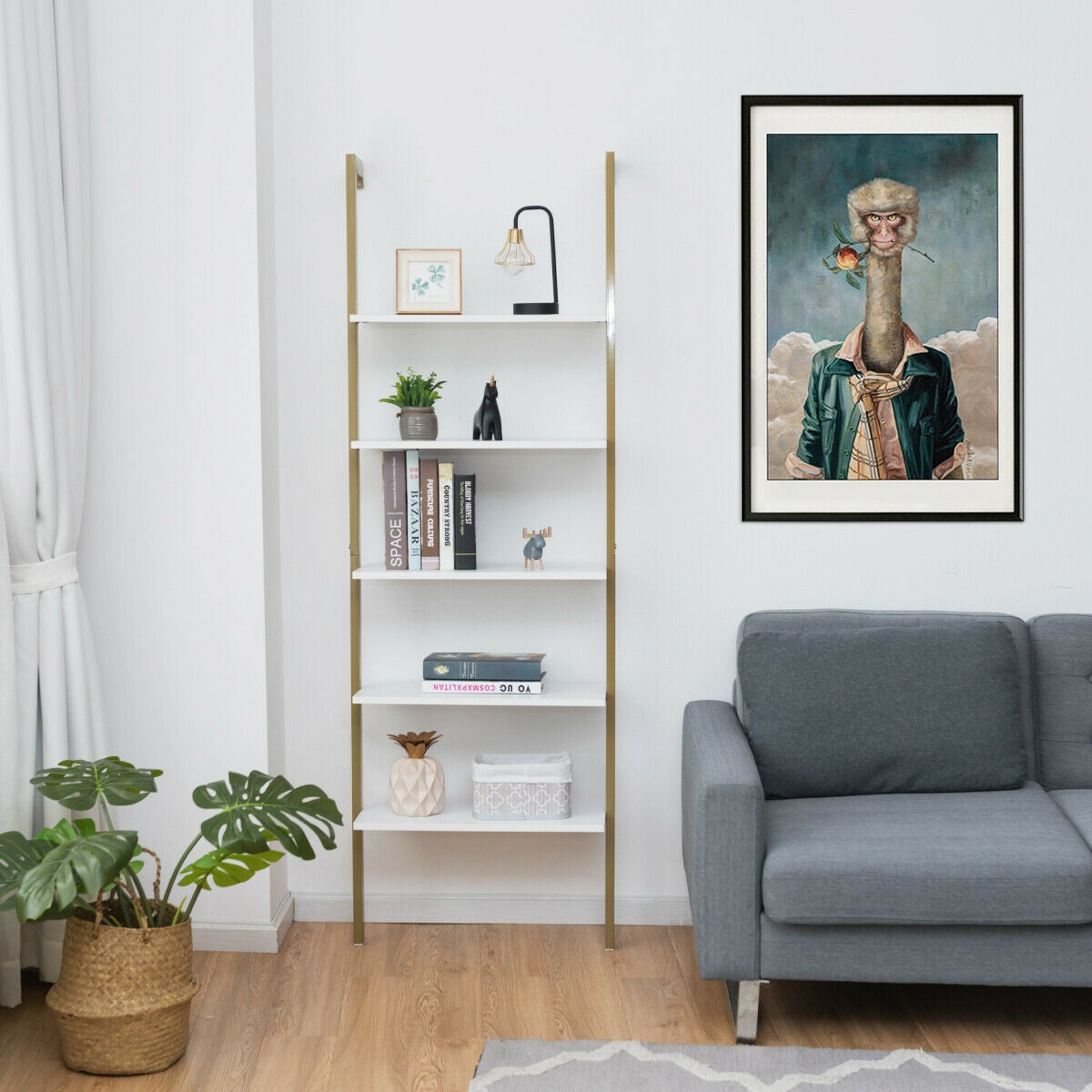 ● 5-tier Shelves for Large Storage: Featuring 5-tier open shelves this ladder shelf can maximize the vertical storage space while keeping your daily essentials and display decorations in order. And the 11” gap between each shelf ensures you to display all sizes of stuff that offer more options of display combinations