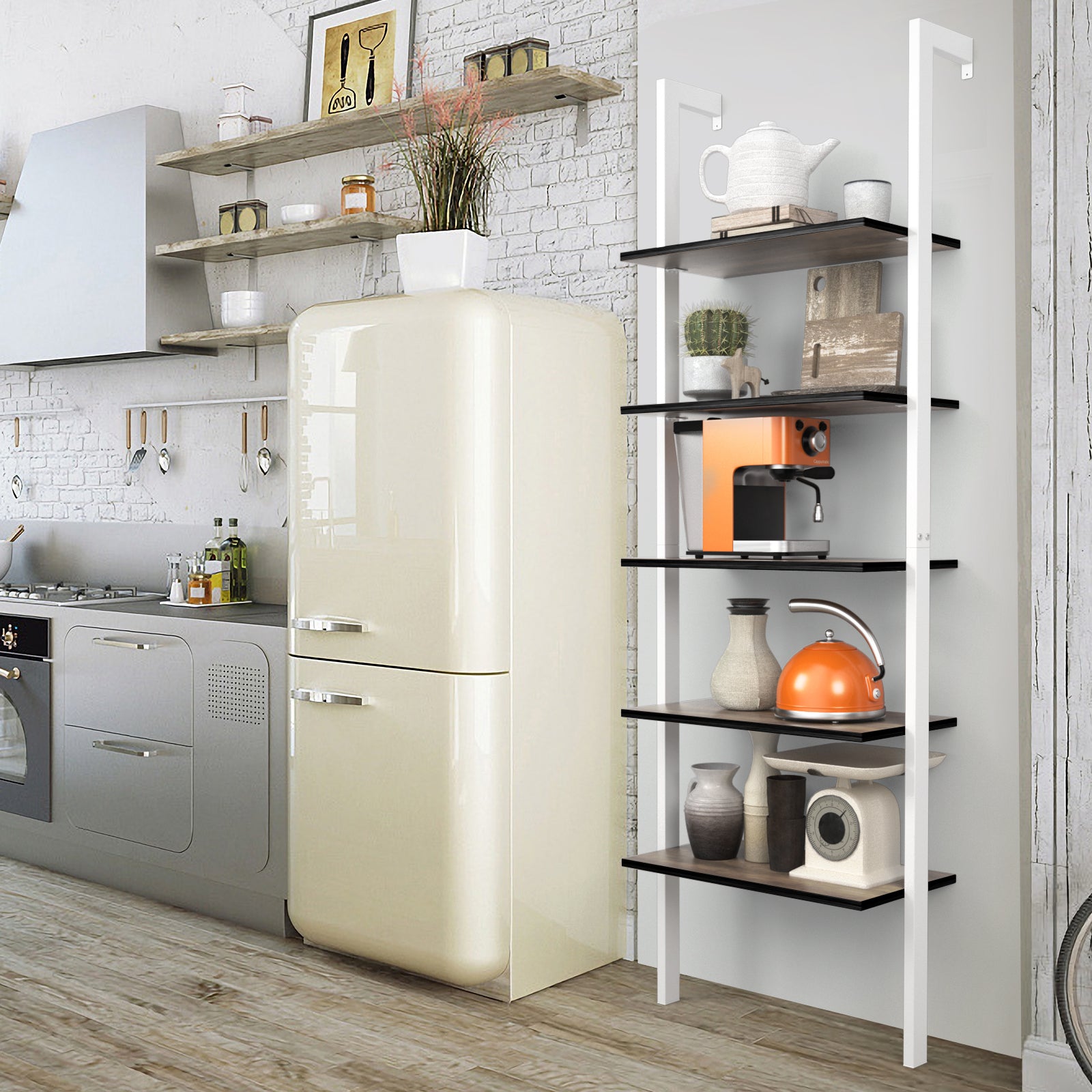 ● Modern Vertical Ladder with Wall-leaning Design: Although this unique design gives people an unstable visual impact the top of the ladder shelf is actually fixed into the wall with screws not wobbling and shaking. And all layers lean against the wall at a 90° vertical angle to ensure that items are placed stably