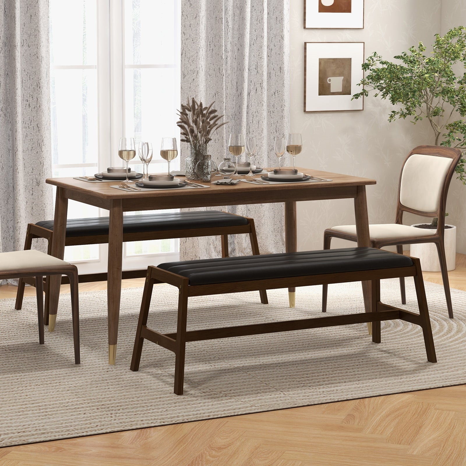 ● Farmhouse & Elegant Style: With the combination of warm wood tones and sleek black upholstery this mid-century table bench exudes a rustic and stylish charm elevating the overall look of your living space with a touch of elegance and sophistication.