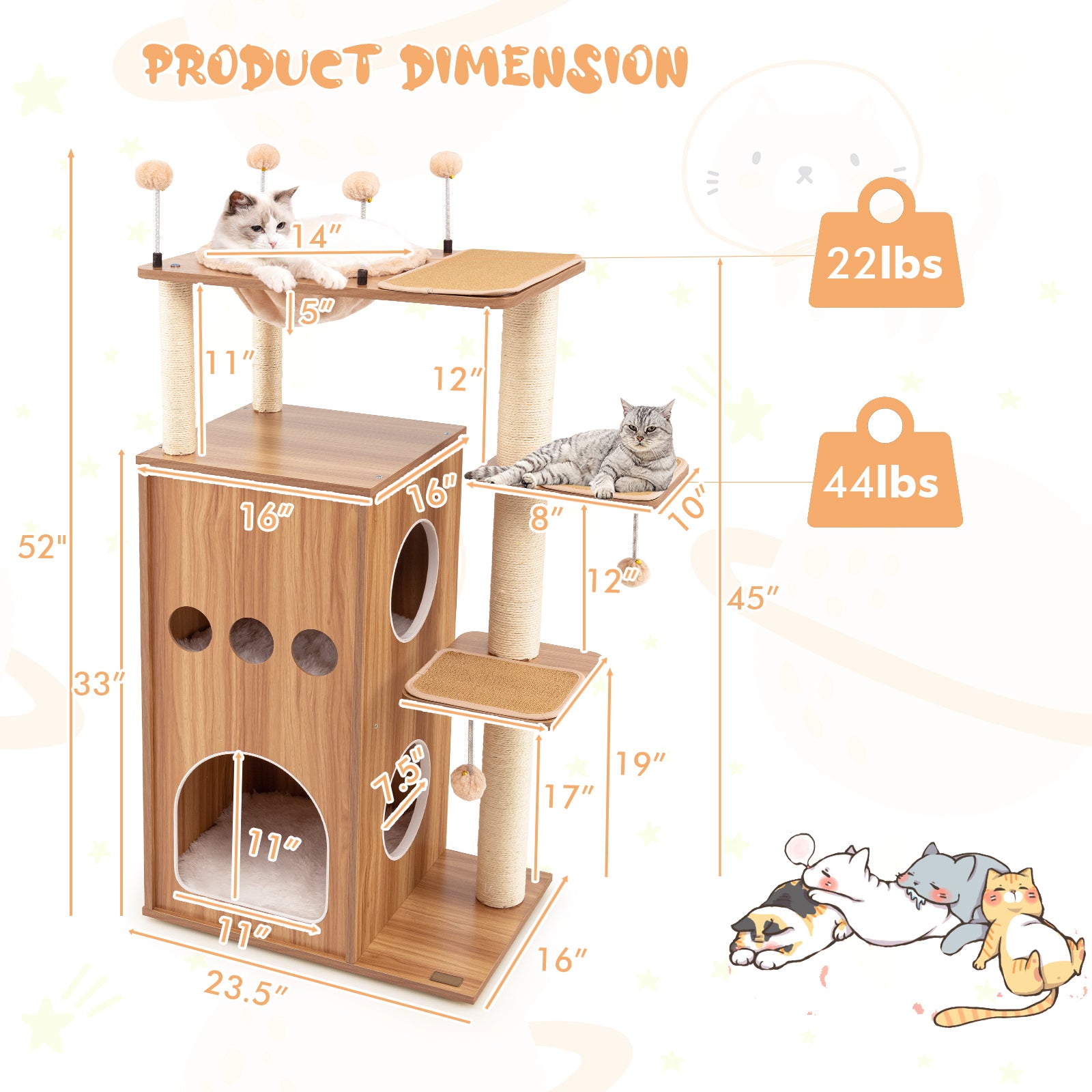 - Cat house size: 16" x 16" x 33" (L x W x H)