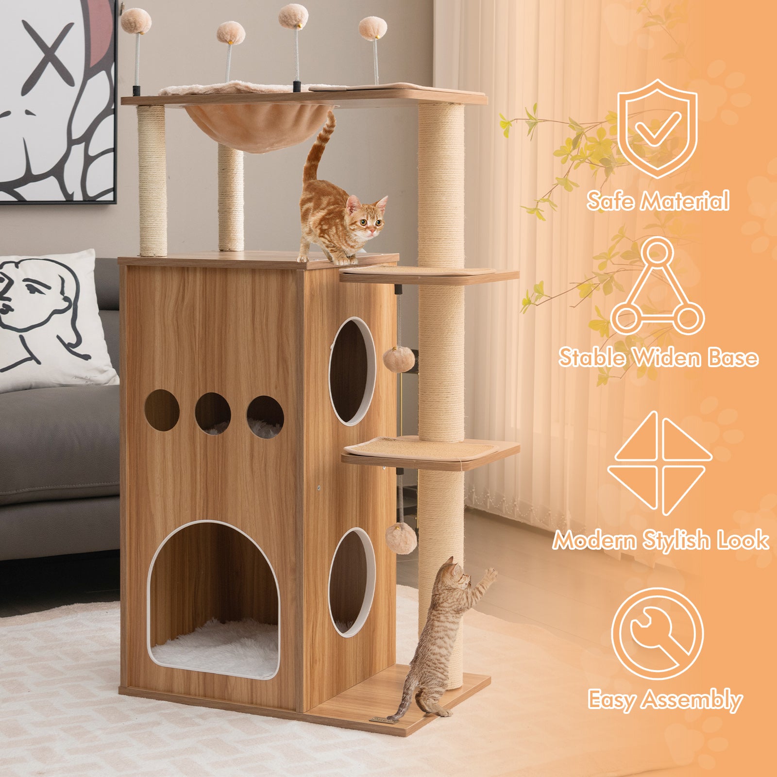 - Sisal wrapped posts fully meet cat's scratching instinct