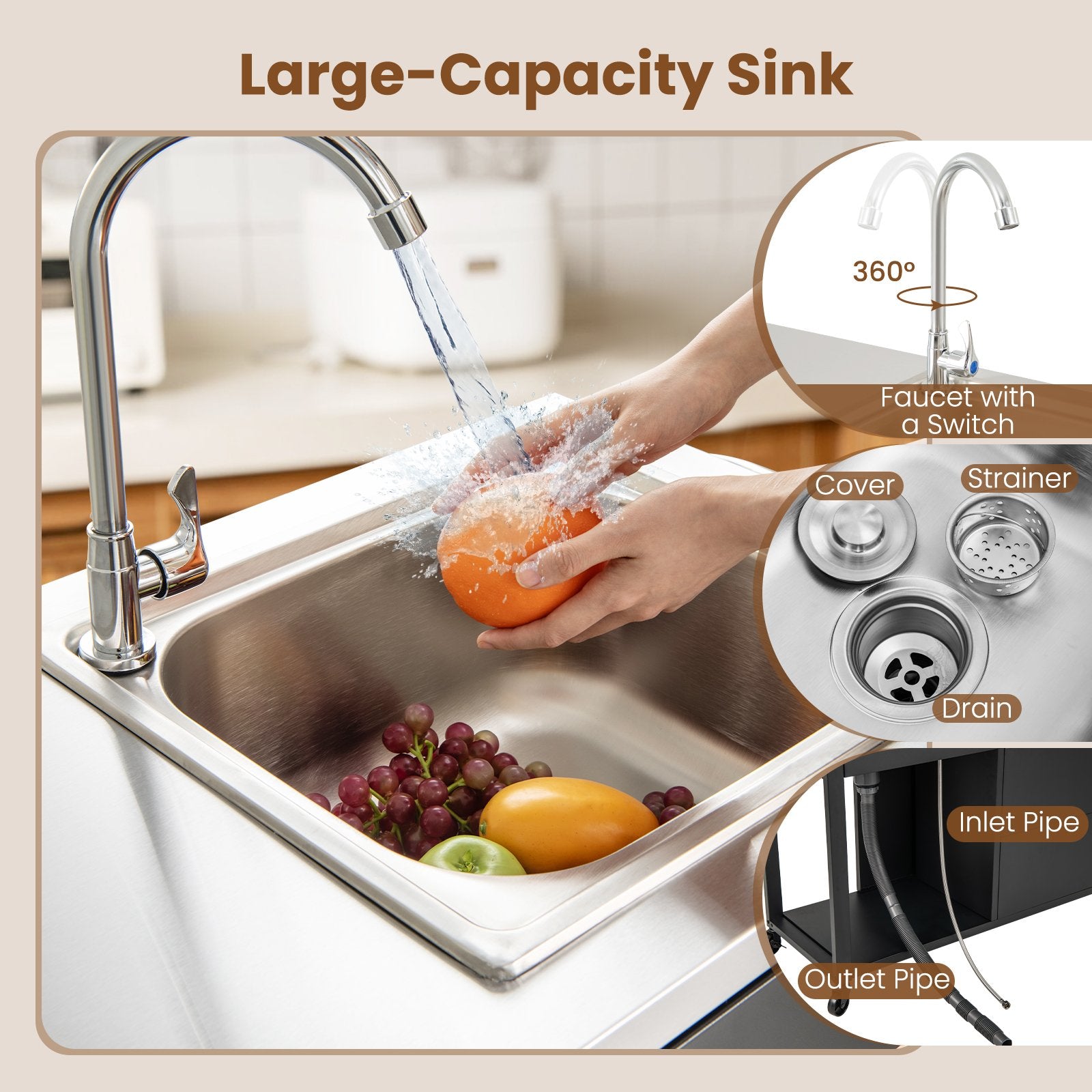 ● Convenient Sink & Drainage: The outdoor grill table is equipped with a sink complete with a 360° rotatable faucet and inlet pipe making outdoor food preparation a breeze. Moreover the strainer drain and outlet pipe allow you to drain water after washing up for added convenience.