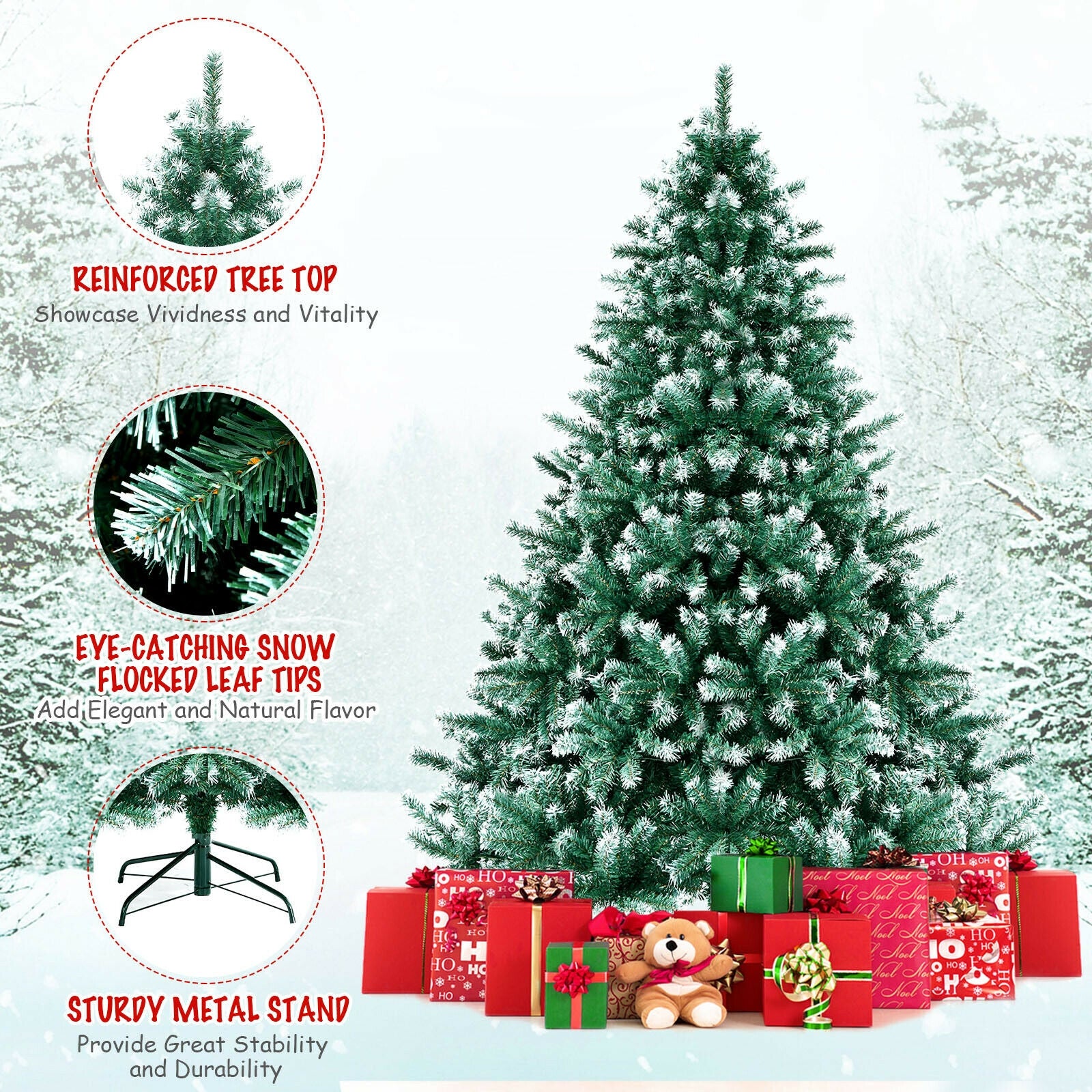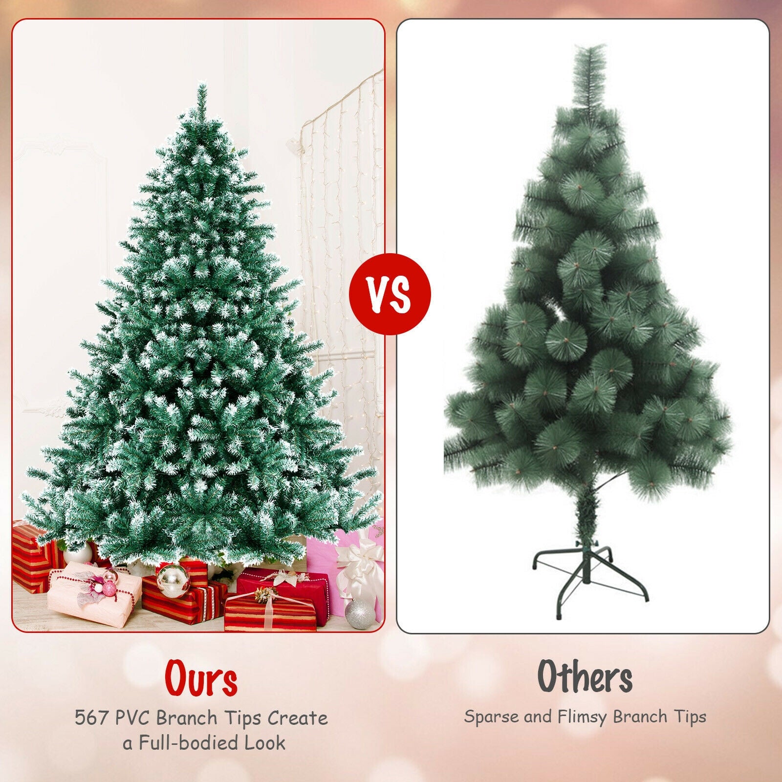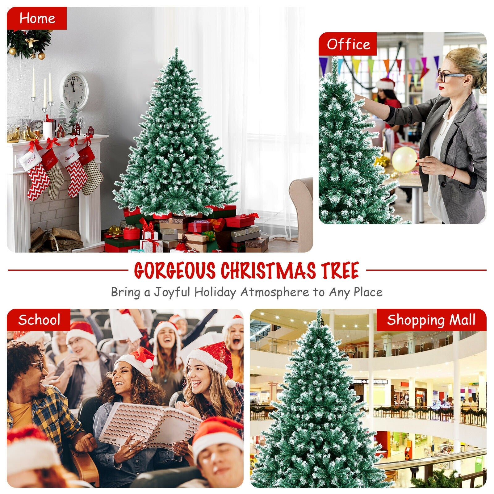The 567 PVC branches with partially snow flocked leaf tips create a leafy and eye-catching appearance making this Christmas tree a perfect addition to the school mall restaurant office and your home.
