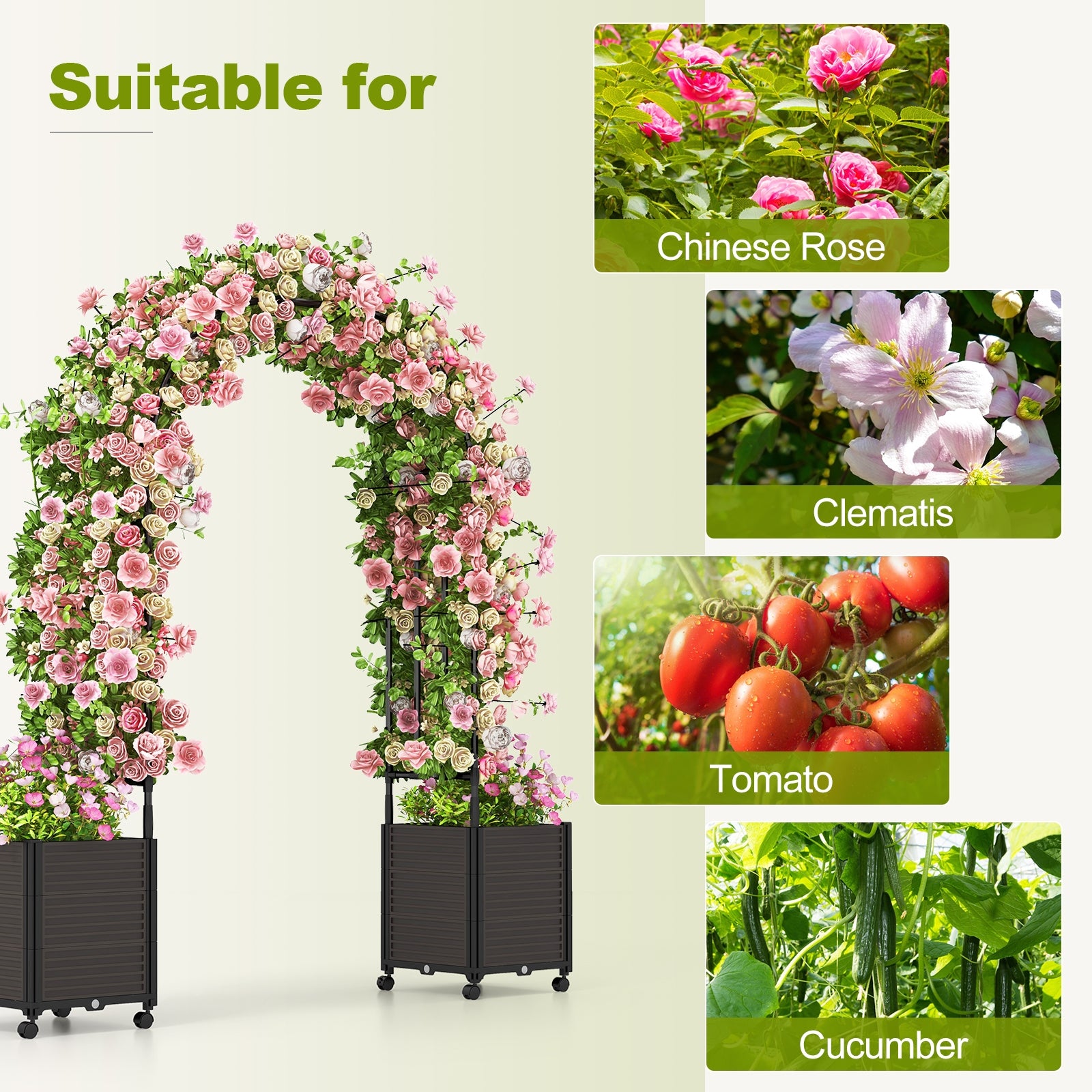 ● Mobile Oasis on Wheels: Infuse dynamic beauty into your outdoor space with the mobility of the arch arbor trellis. Fitted with 8 universal wheels including 4 lockable you have the freedom to move your flourishing arboretum to the ideal location.
