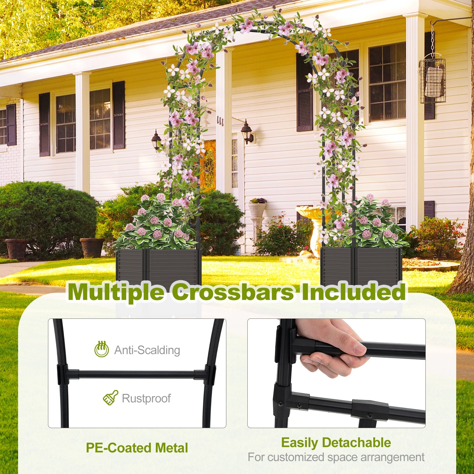 ● Flexible Arch Trellis: The multiple crossbars included come with PE coating to protect your plants from being scalded while extending the overall service life. In addition they are designed to be removable providing a flexible space arrangement solution for your cucumber grape vine and climbing rose.