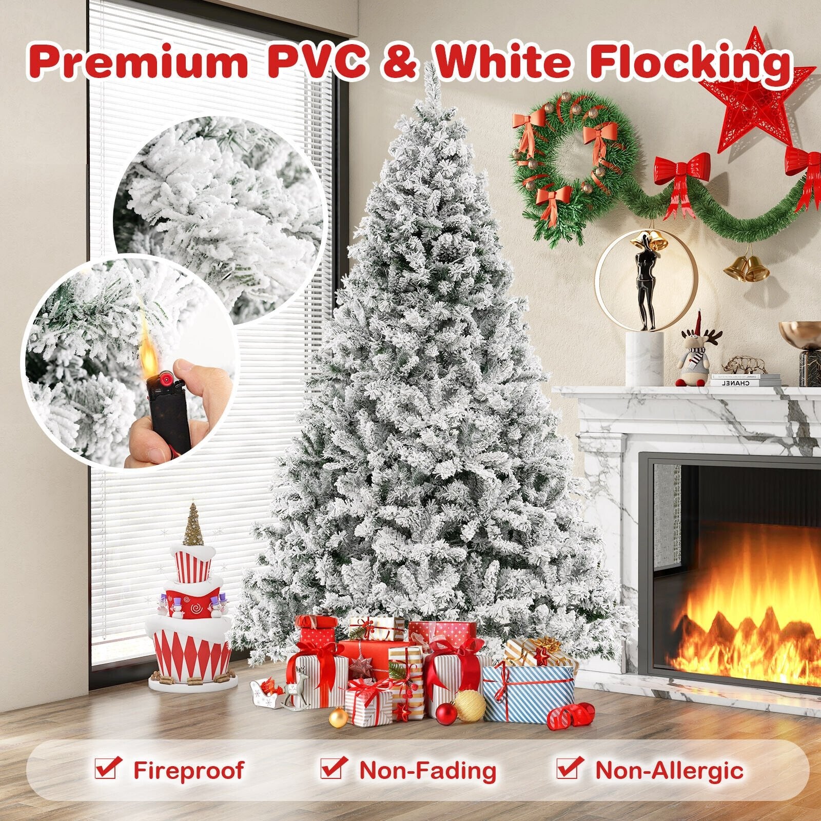 ● Durable Lush Tree: With a snowy flocked design the 6 ft Christmas tree echoes the winter season while boasting 644/956/1370 branch tips to display impressive vibrancy. Besides it is made of 100% new PVC that resists fire fading and won't cause any allergies.