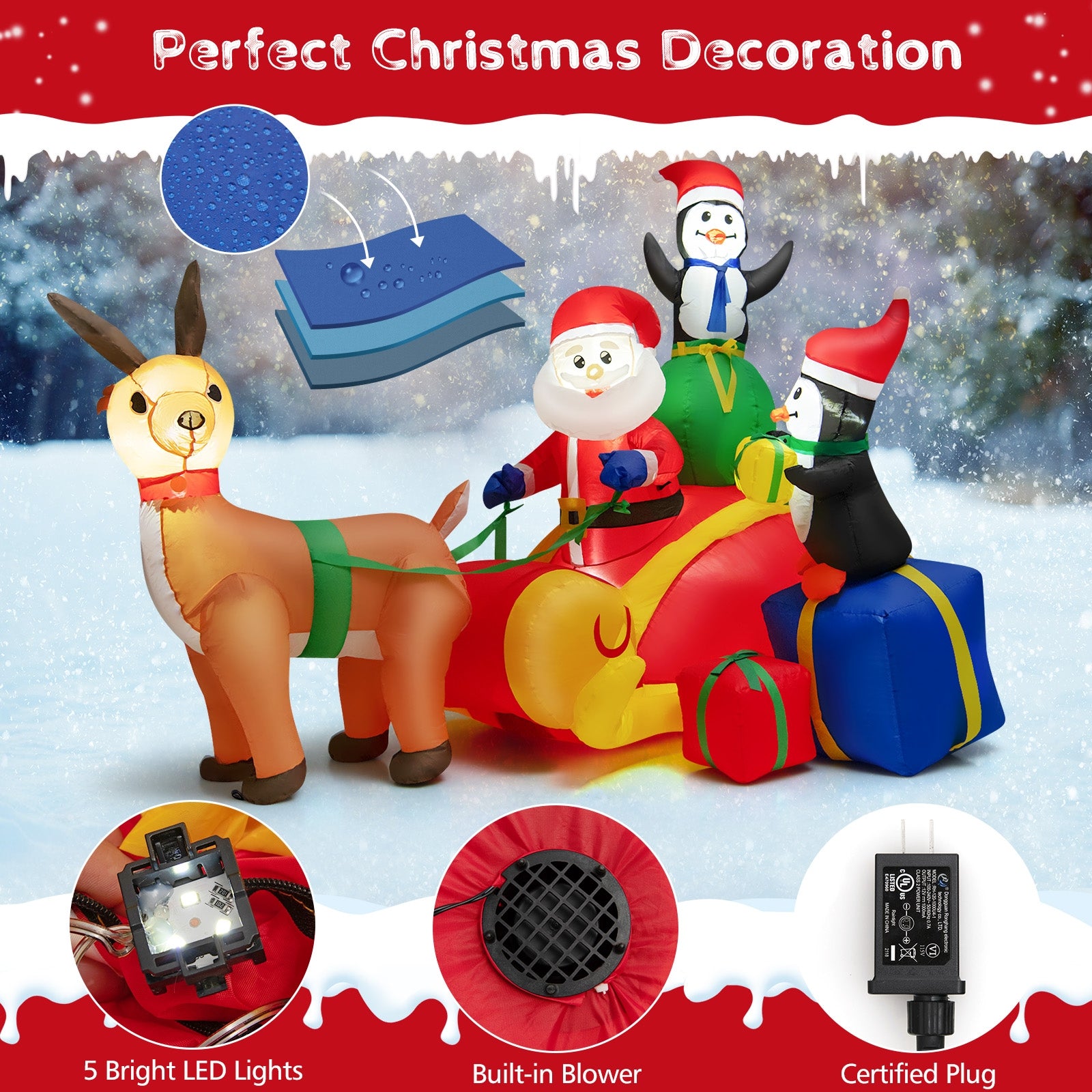 ● Perfect Christmas Decoration: Inspired by Christmas tales and cartoons the inflatable decoration is designed in a themed appearance of the Santa Claus driving a reindeer sleigh together with 2 penguins and several gift boxes. It looks like the Santa are landing in your yard and going to hand the gift to kids.