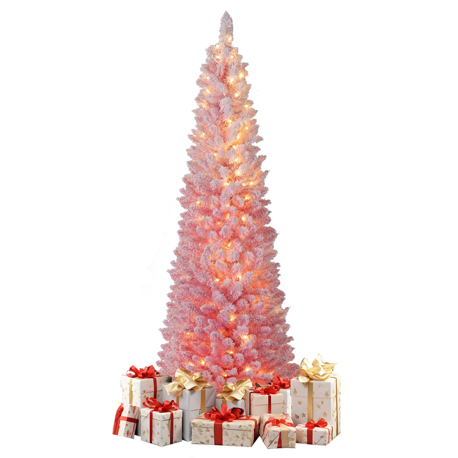 ● Winter Magic in Every Detail: Adorned with 392/527 snow-flocked branch tips the slender Christmas tree embodies the essence of the holiday season. Transitioning from a soft pink base to a frosty peak it blends icy elegance with a touch of whimsy to make your space more inviting.