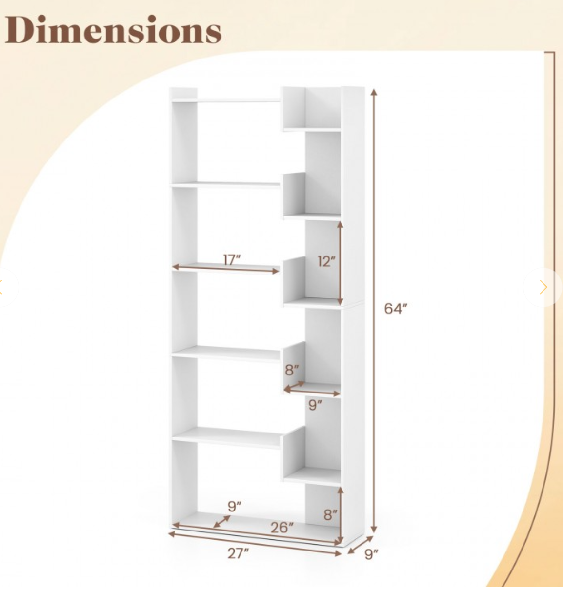 ● Multi-Scene Use: The 27"L x 9"W x 64"H bookshelf is perfect for both storing and showcasing items. Complete with protective foot pads, it safeguards your floors from scratches, making it a practical addition to living rooms, bedrooms, studies, etc.