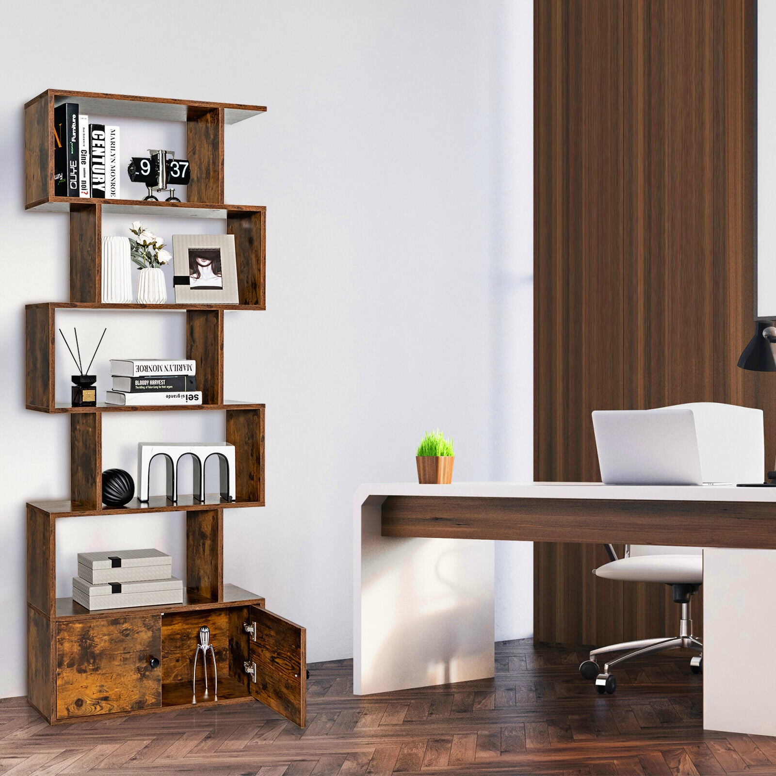 With a geometric design this S-shaped bookshelf with cabinet will be a great addition to your space suitable for the living room bedroom and home office.