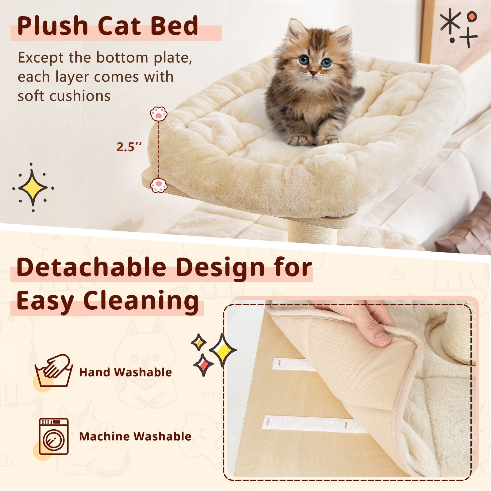 ● Sturdy and Stable Structure: Made of solid wood multi-layer boards the modern cat tree is sturdy enough. Additionally each platform comes with a detachable plush pad which increases friction to avoid slipping when the cat jumps. And weighted base with 6 non-slip pads will add stability and prevent floor scratches.
