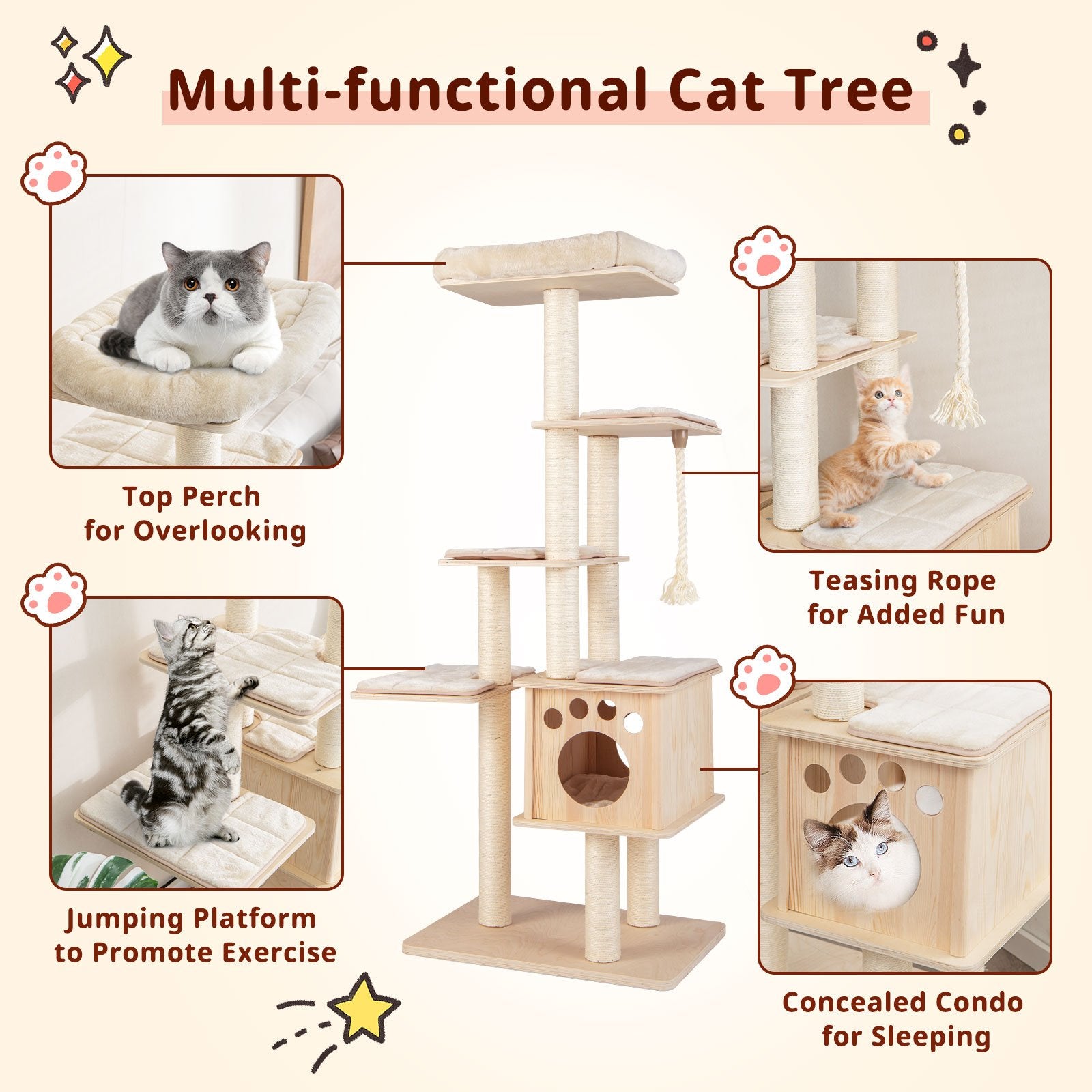 ● Stylish and Modern Furniture: Featuring natural color and concise design the 27.5" x 20" x 67" tall cat tree tower is not only an ideal cat play center but also a modern home furniture which can easily blend with kinds of home styles and upgrade your space.