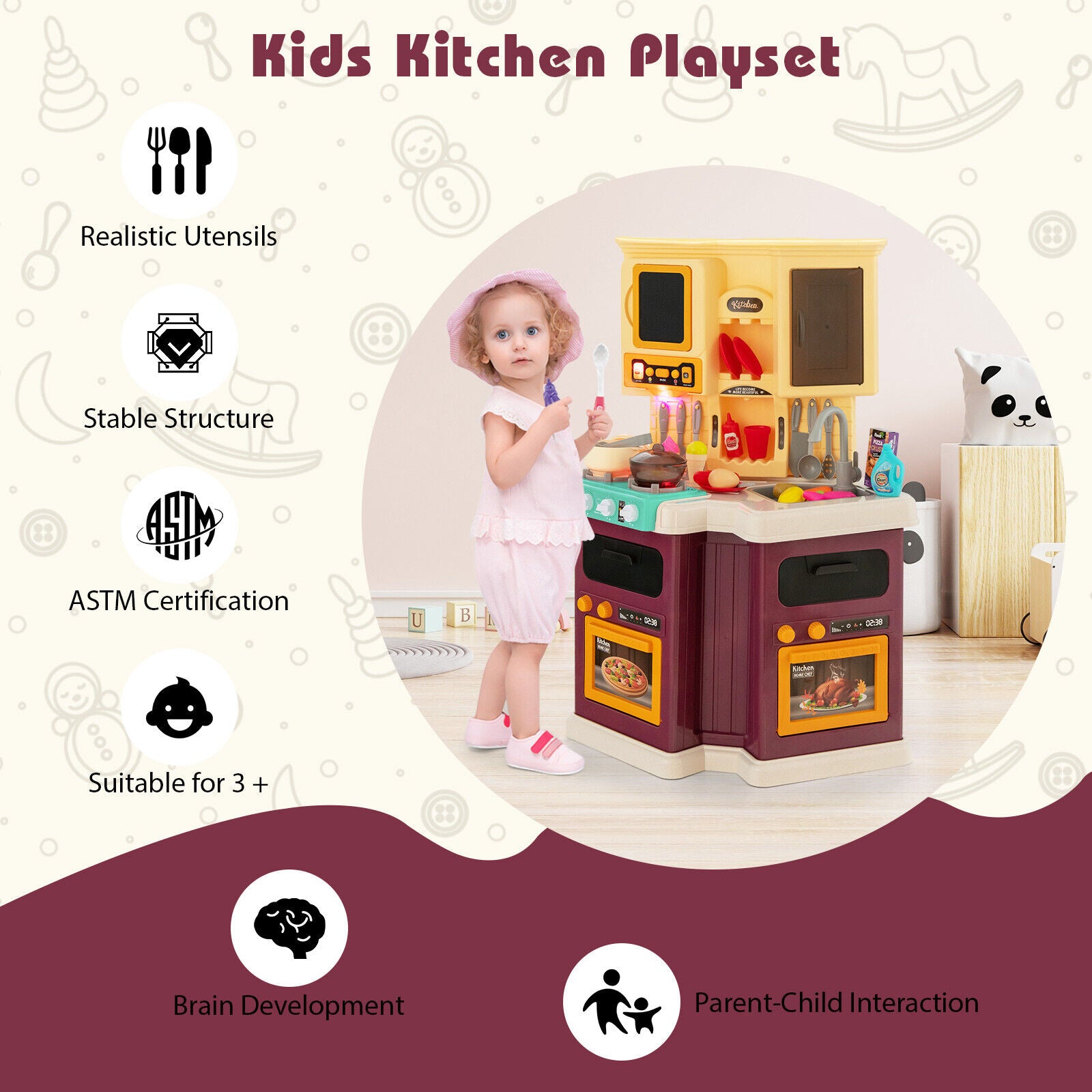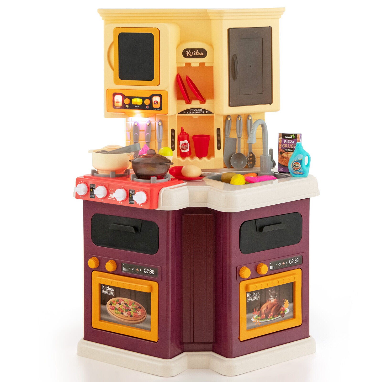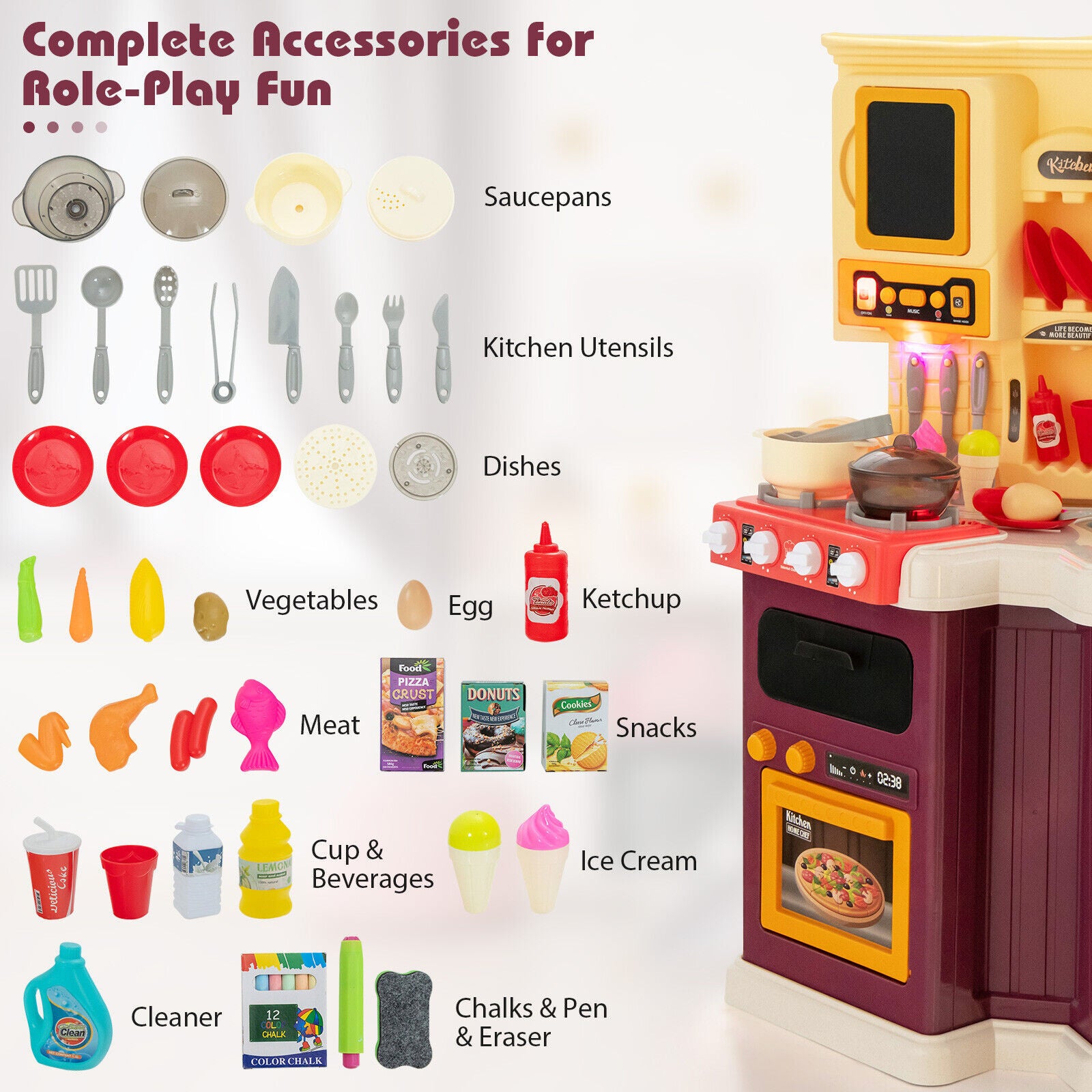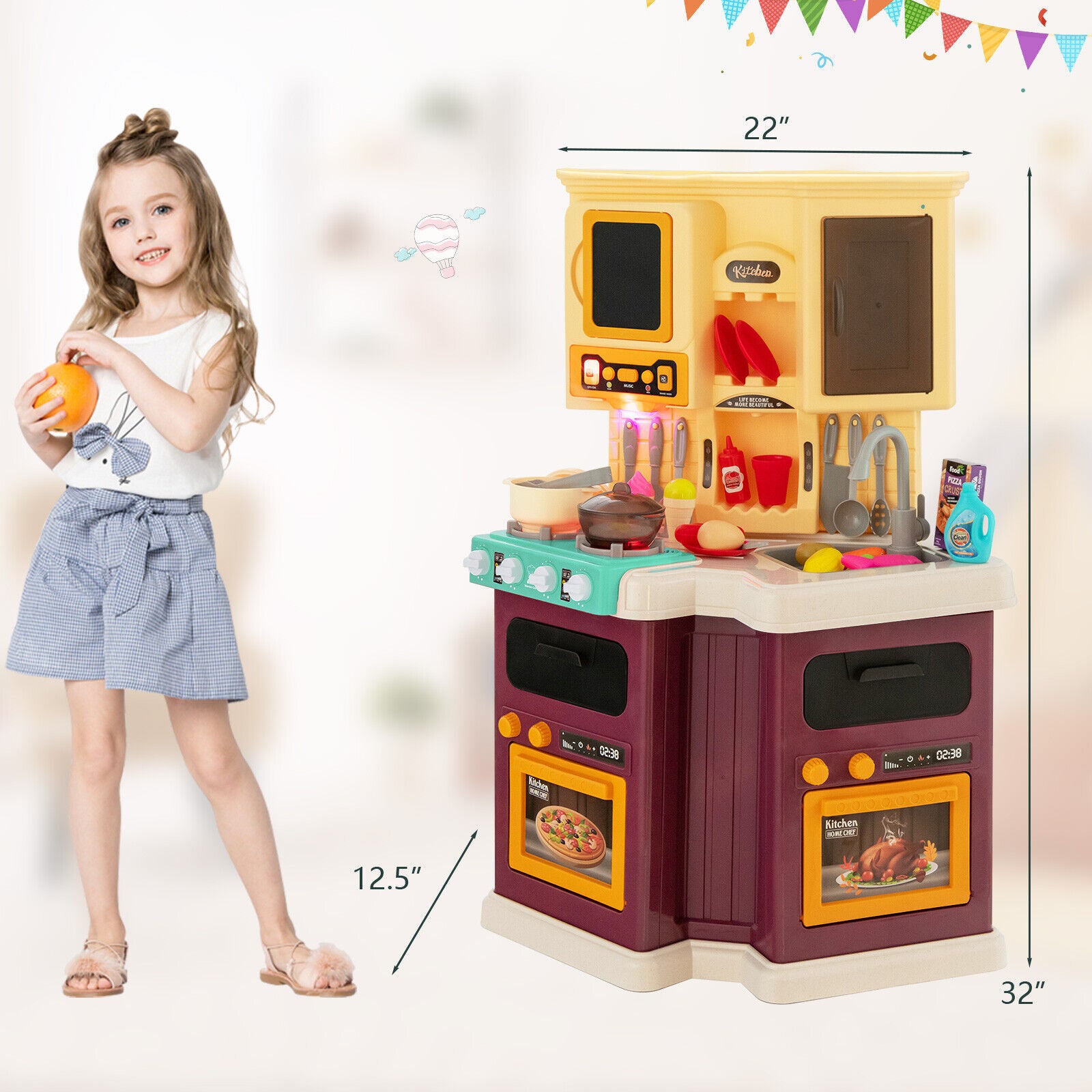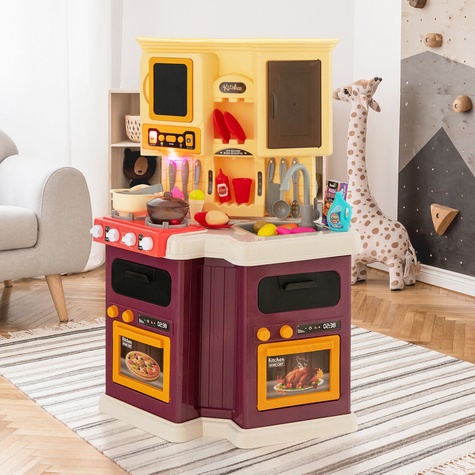 67 Pieces Kid's Kitchen Playset with Vapor and Boil Effects-Purple