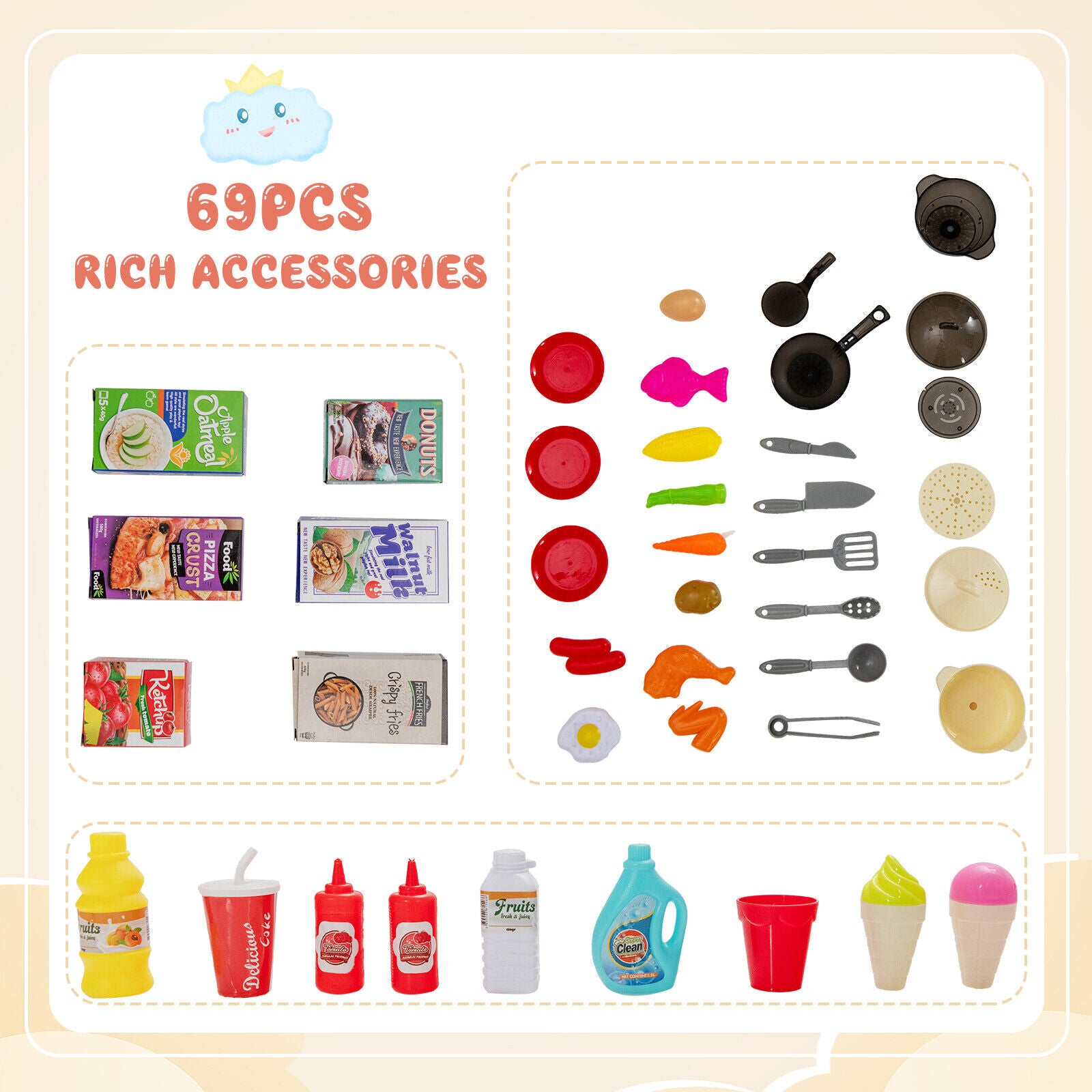 - 1 x 69PCS kitchen playset