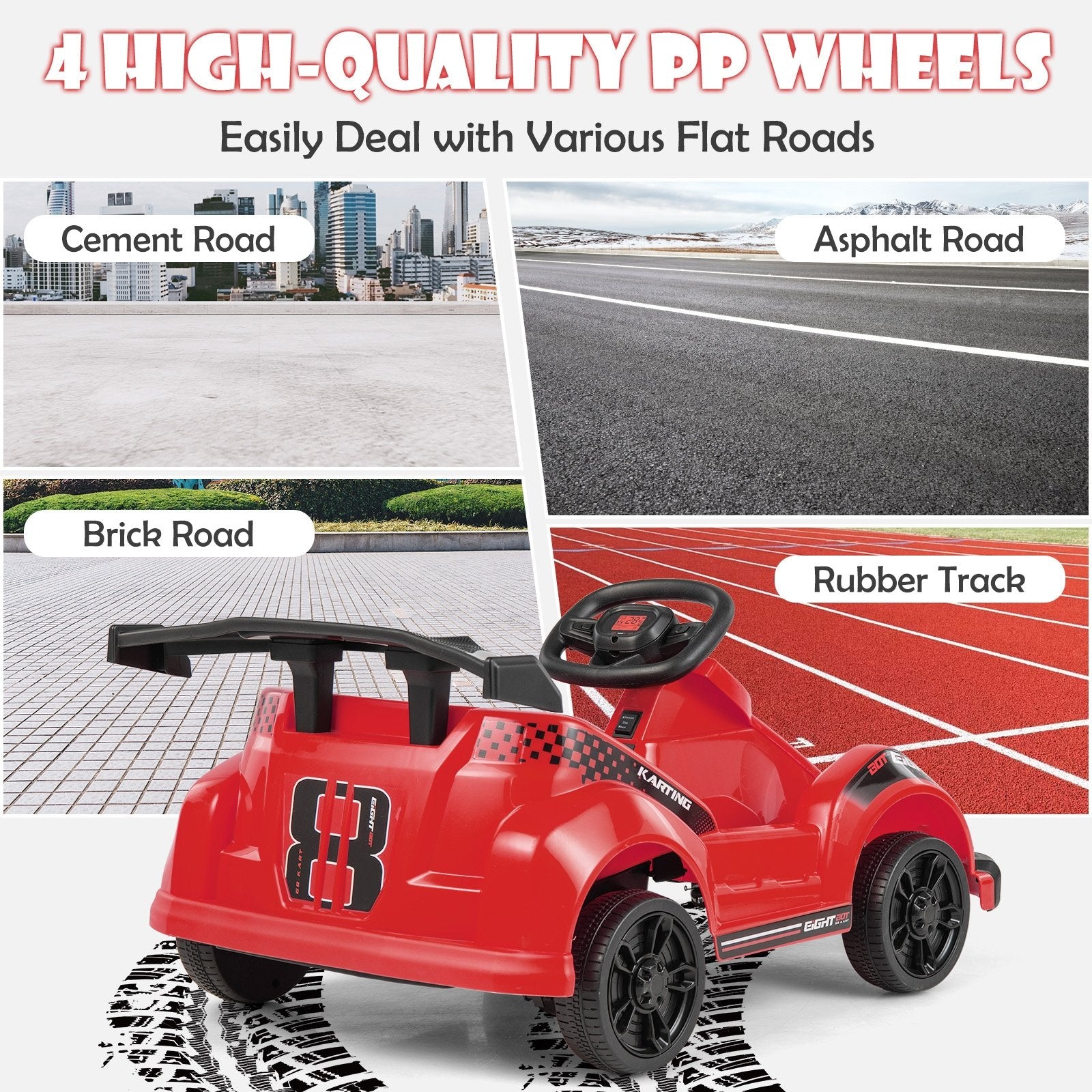 -4 durable and wear-resistant wheels help kids to drive on wood floor cement road brick road and more