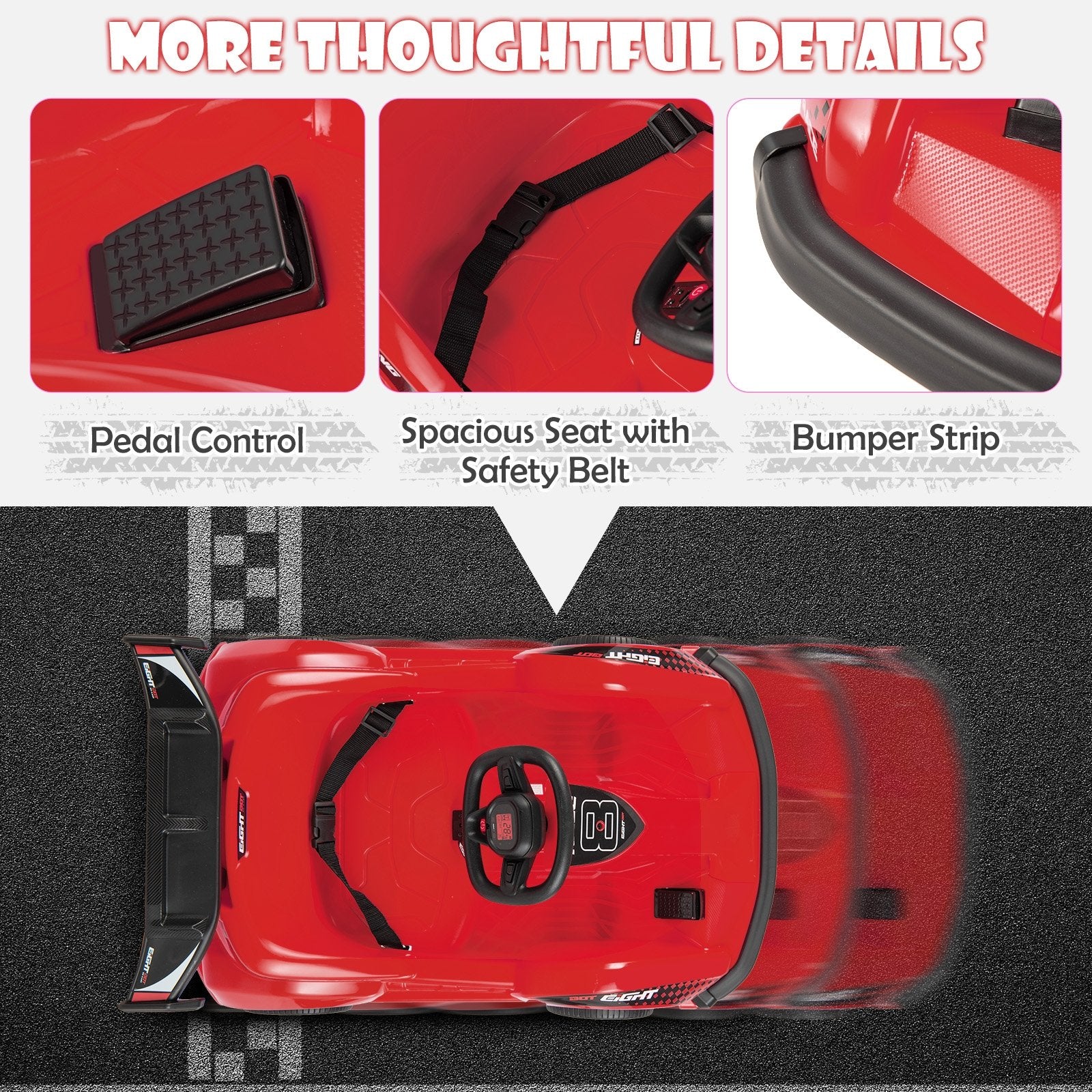 -Adjustable safety belt and soft bumper for better safety protection