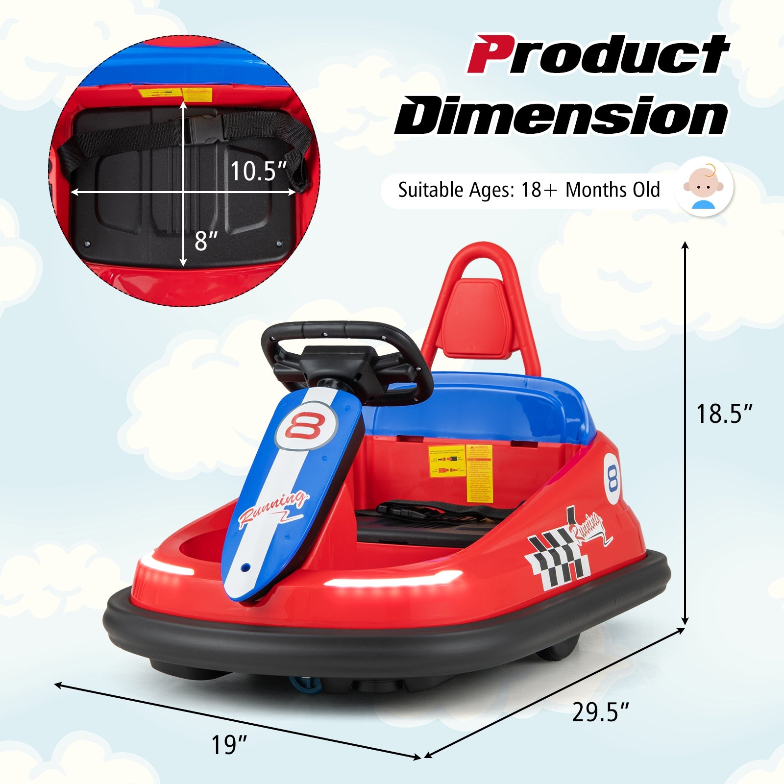 ● Exciting yet Safe Bumping: Equipped with dual motors and a rechargeable battery this electric bumper car allows kids to enjoy a long time of exciting bumping. And the universal wheels make the bumper car spin 360° for unlimited fun. Besides the spacious sitting area with a safety harness keeps children in position for security.