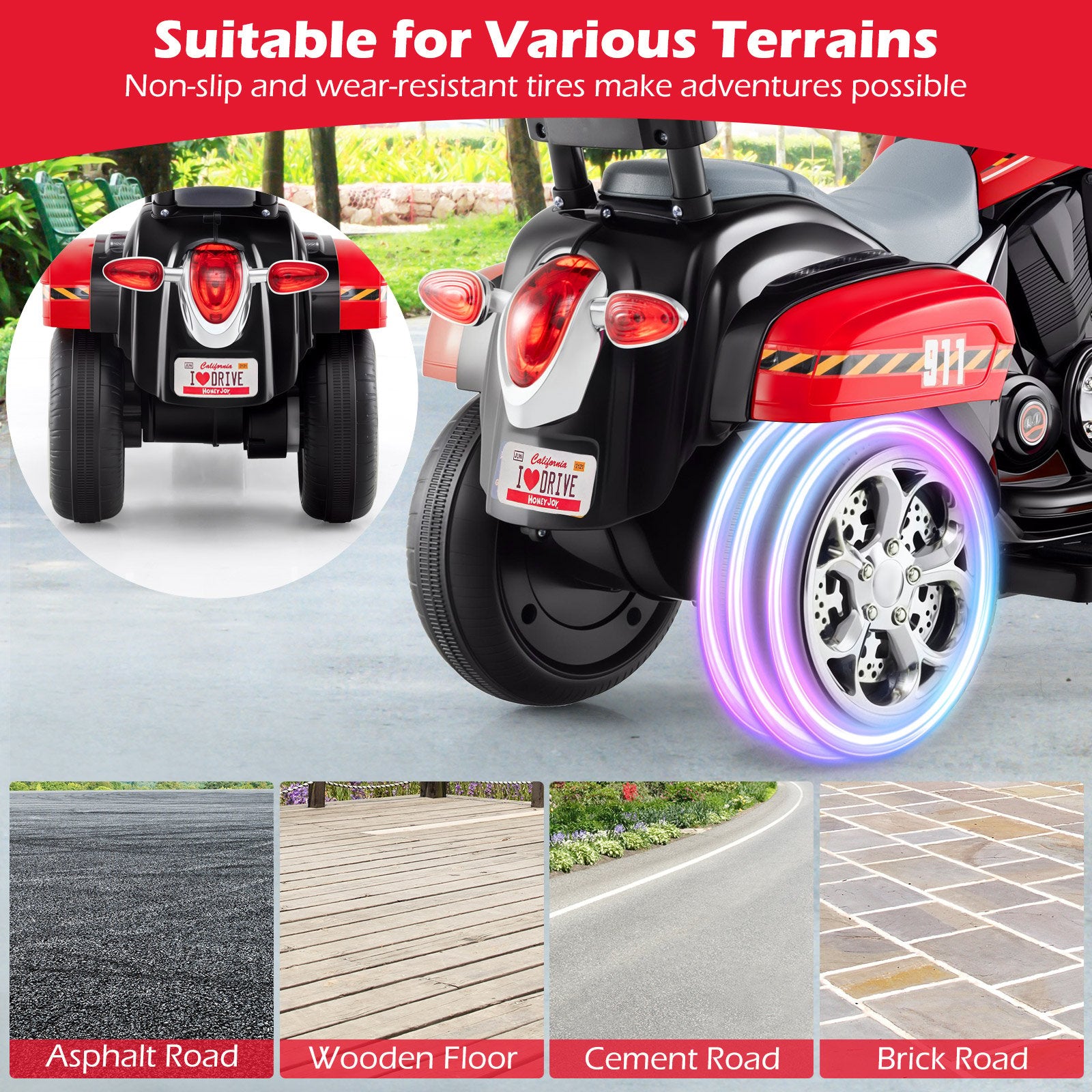 ● Bright Headlight and Cheering Music: Equipped with a headlight the chopper motorcycle is capable of brightening the surroundings in the darkness. The headlight can also be adjusted either up or down according to your kids' preference. Additionally built-in music adds more fun and avoids boredom during driving.
