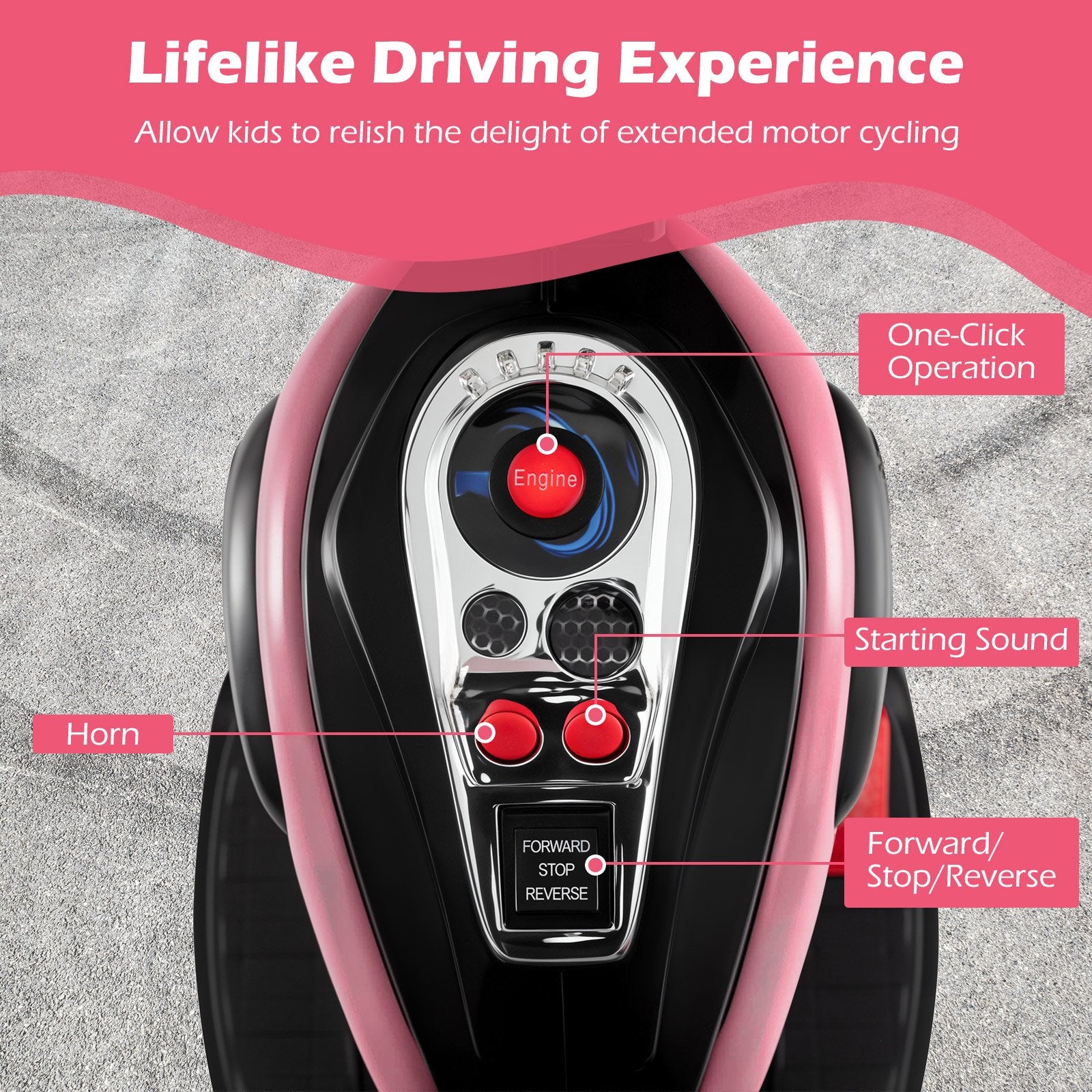 6V Powered Toddler 3-Wheel Motorbike Ride On Toy with Horn and Headlight-Heart Pink