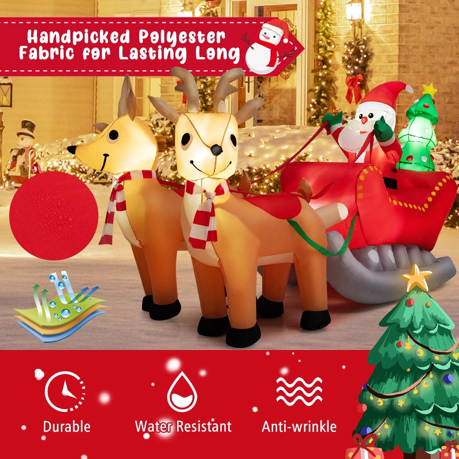● Funny and Festival Atmosphere: The Christmas blow-up reindeer with Santa Claus on a sleigh has many adorable elements such as cute elk antlers Christmas tree decorative top star and scarves. Along with Santa Claus on a sled pulling 2 reindeer it will be one of the children's favorite Christmas decorations.