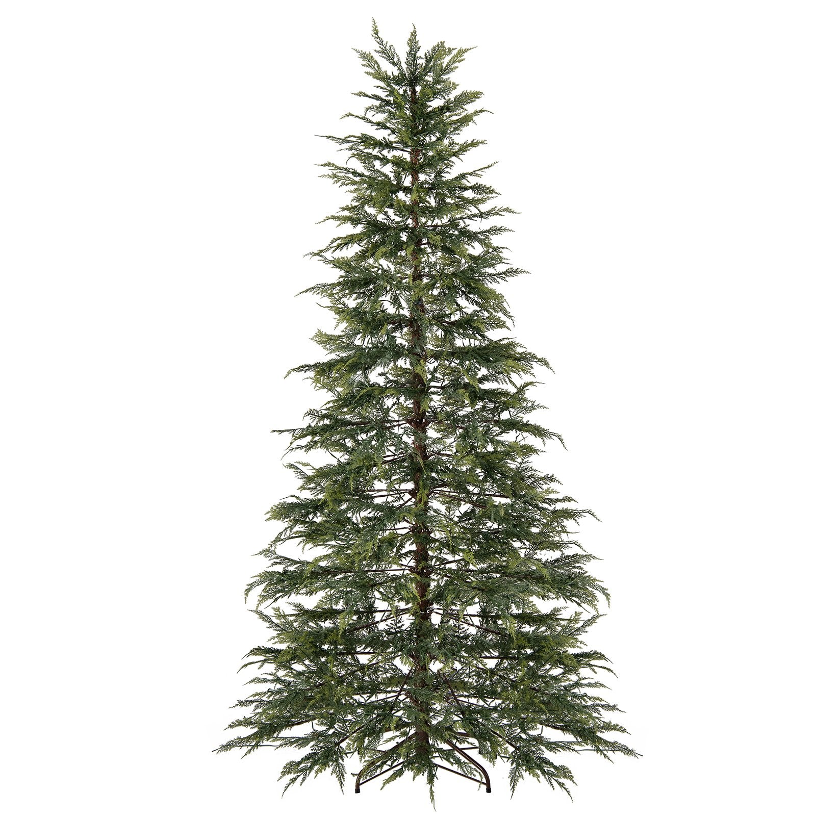 ● Natural and Realistic Appearance: This 6.5/7.5 ft artificial Christmas tree boasts 578/725 vivid branch tips and a realistic trunk covered with PVC leaves. Plus it is designed to emulate the sparse foliage of fir trees offering a touch of nature's charm to your holiday setup.