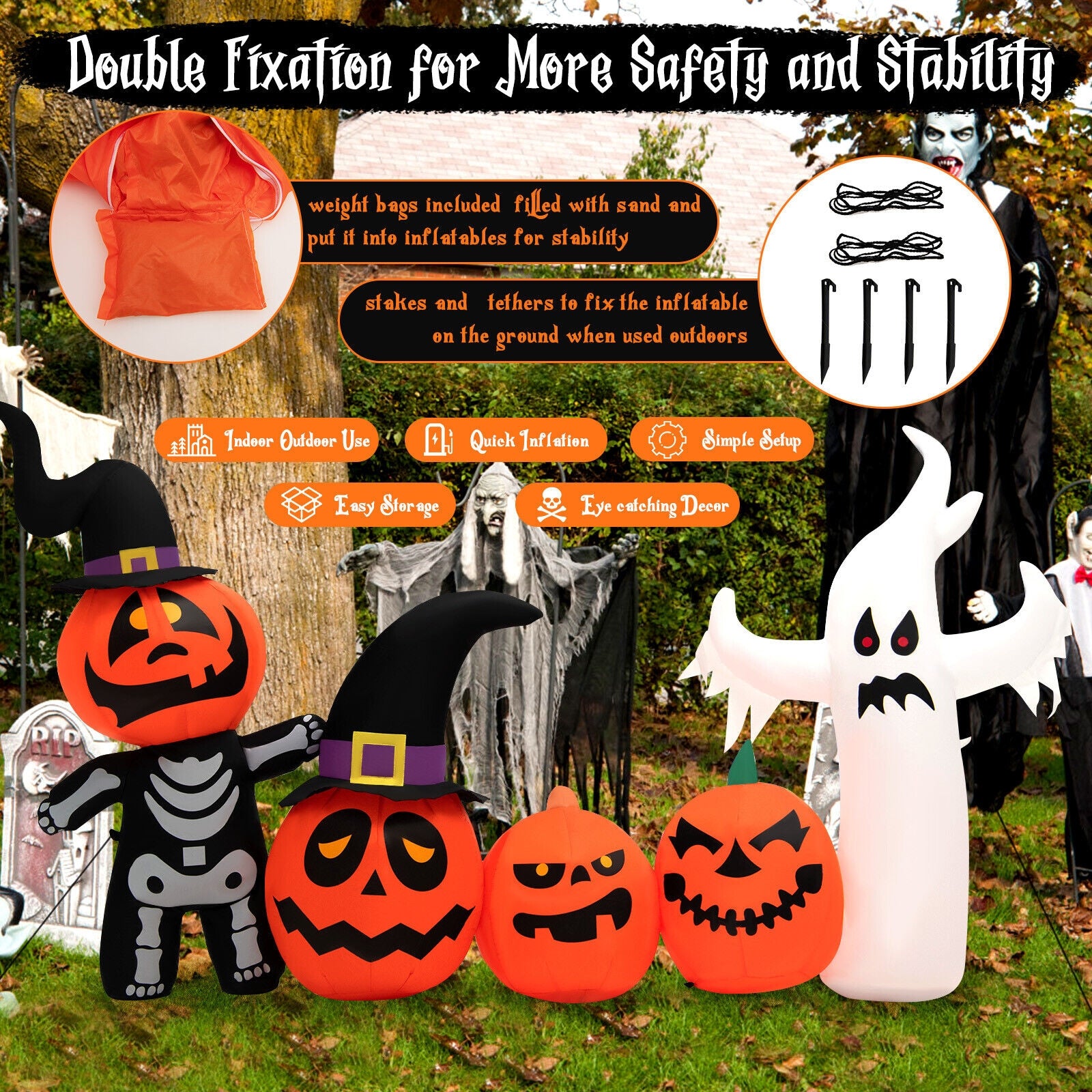 It's time to pick a Halloween theme for your yard and decorate it! The lighted design makes this inflatable pumpkin ghost combo decor perfect for your nighttime displays a great addition to your family photos. Its weather-resistant construction can withstand the bad weather for safe outdoor use.