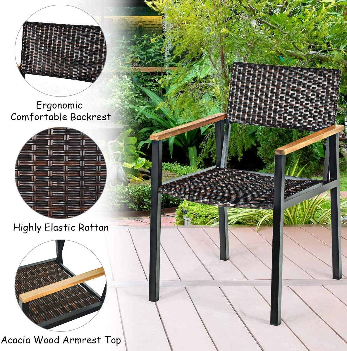 ● Weather Resistant Rattan and Steel Frame: The backrest and seat of each armchair are made of all-weather rattan which is durable enough to withstand severe weather. Besides the metal frame is sealed with a powder coating to ensure that it can prevent rusting even in outdoor wet environment. More corrosion-resistant acacia wood materials can prolong the service life.