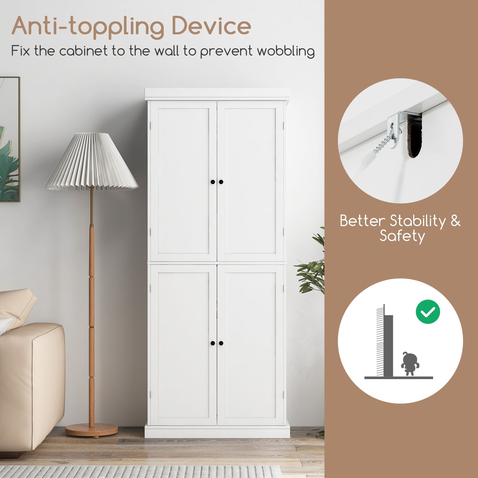 72.5” Tall Buffet Cabinet with 6-Tier Shelves and 4 Doors-White