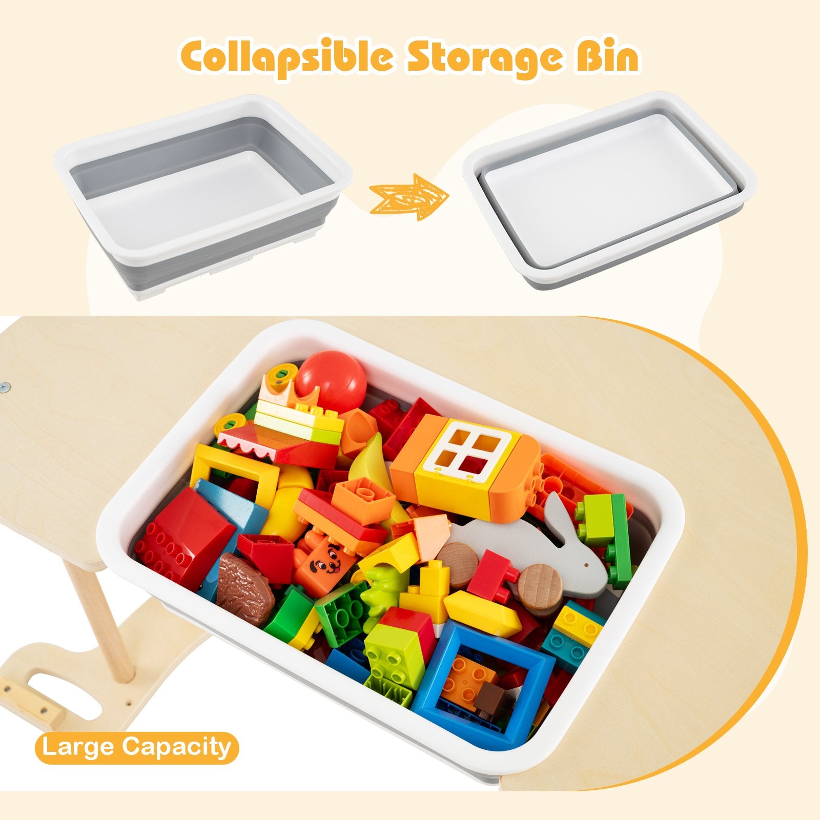 ● Convenient Storage Bin: A large storage bin can be placed on the wooden sensory table for tucking away toys and essentials enabling quick clear-ups after play. When not in use the bin can be folded for space-saving storage.